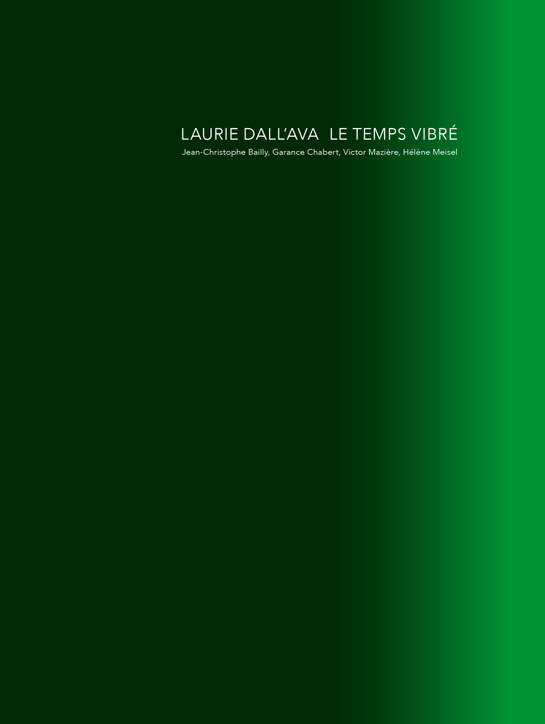 Le Temps vibré documents Laurie Dall'Ava's long-term research into an organic pigment based on chlorophyll and cyanobacteria, tracing the artist's field of investigation over a period of fifteen years.