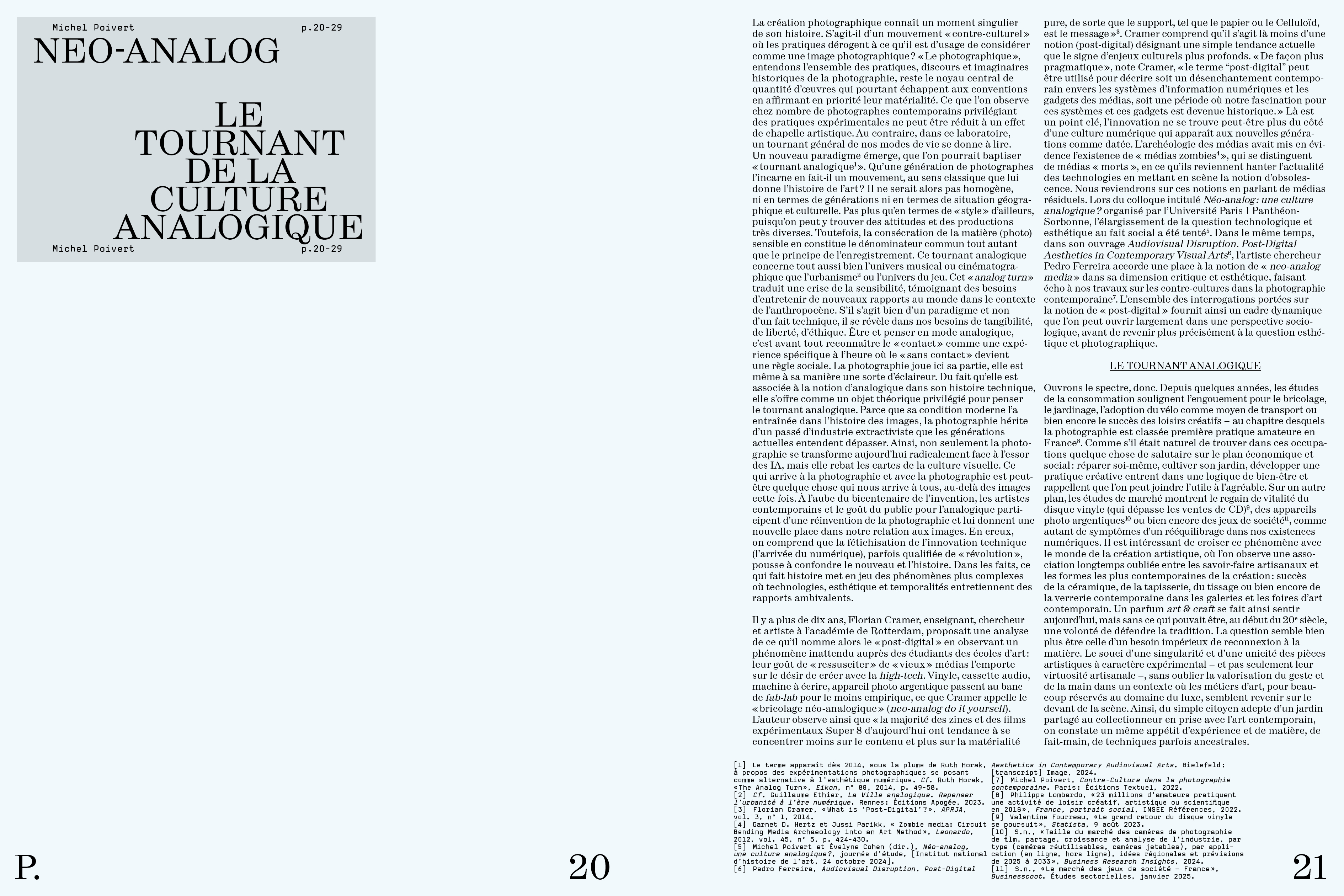 Seeking to fill a gap in critical discourse by addressing the transformations photography has undergone over the past generation, the Cahiers du CIP aim to connect the practices of photographers, professionals, collectors, gallerists, and thinkers of the image within a polyphonic approach.