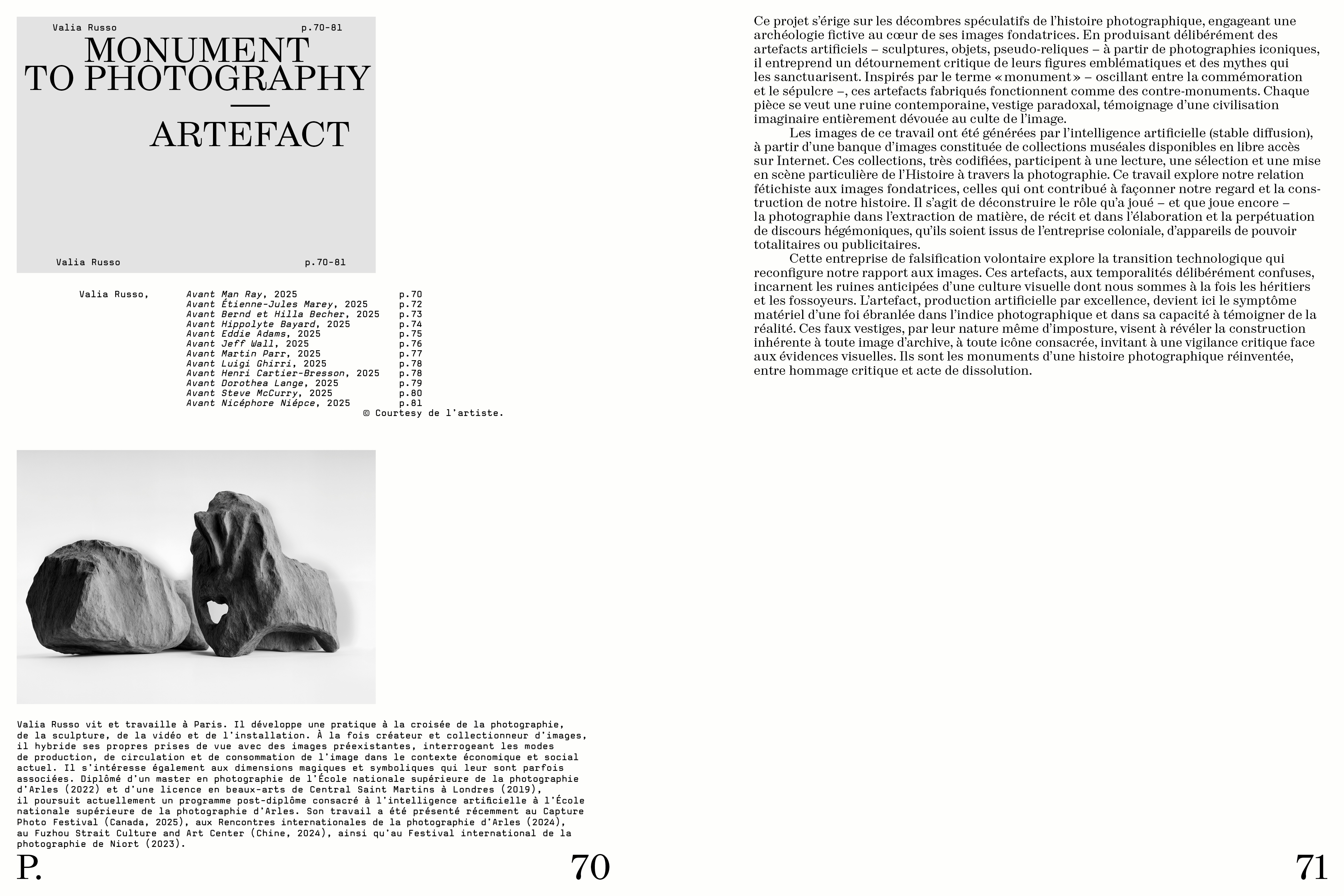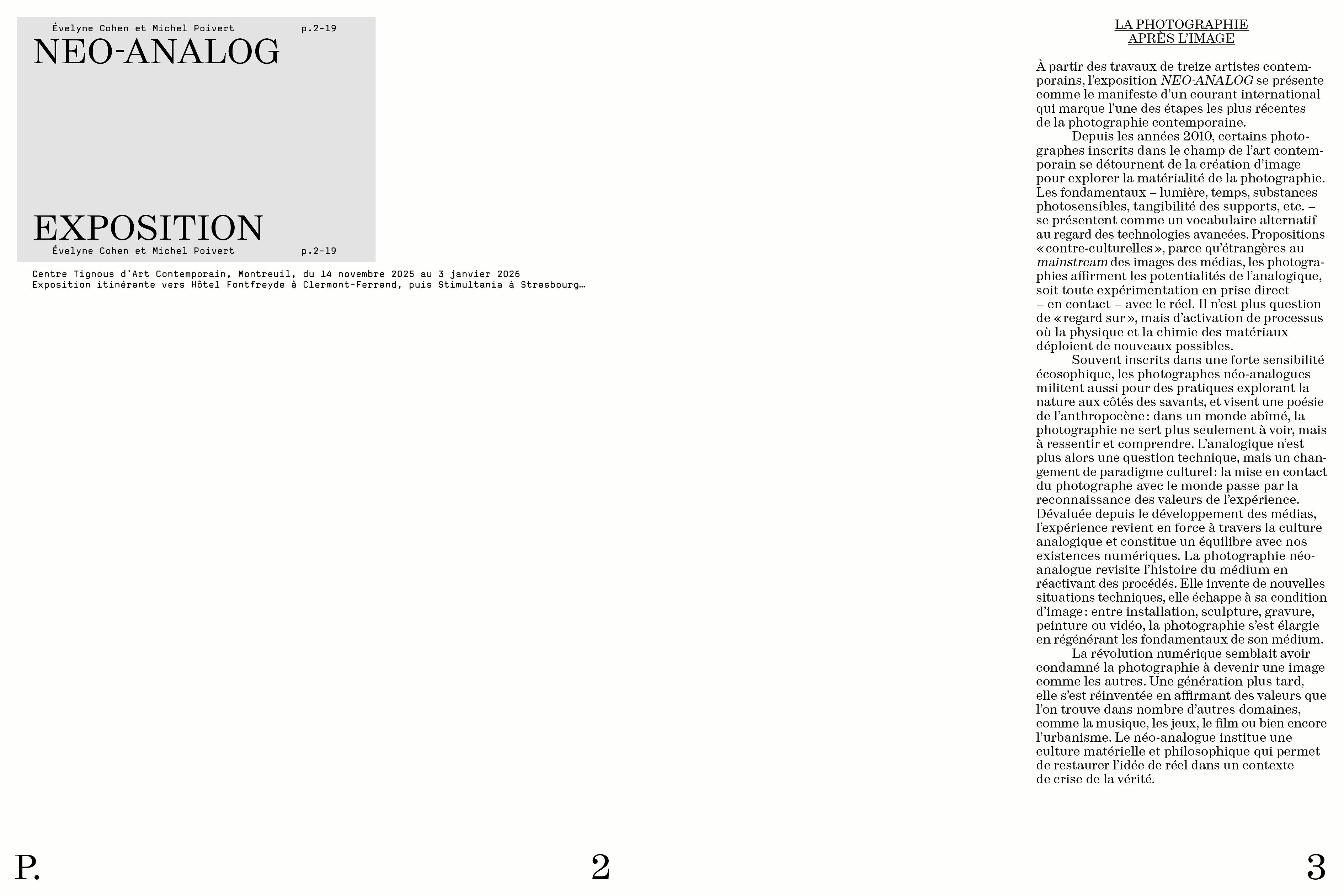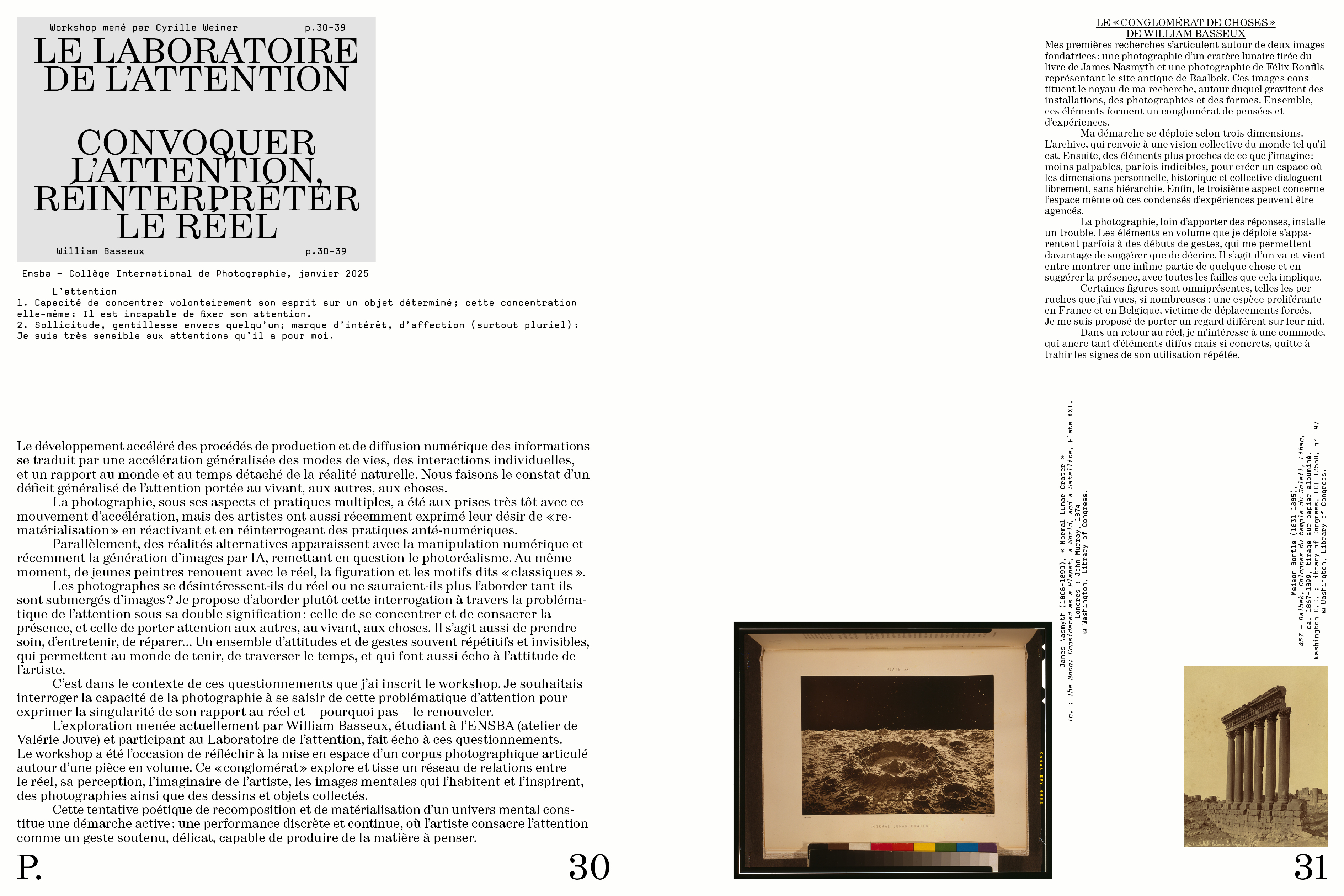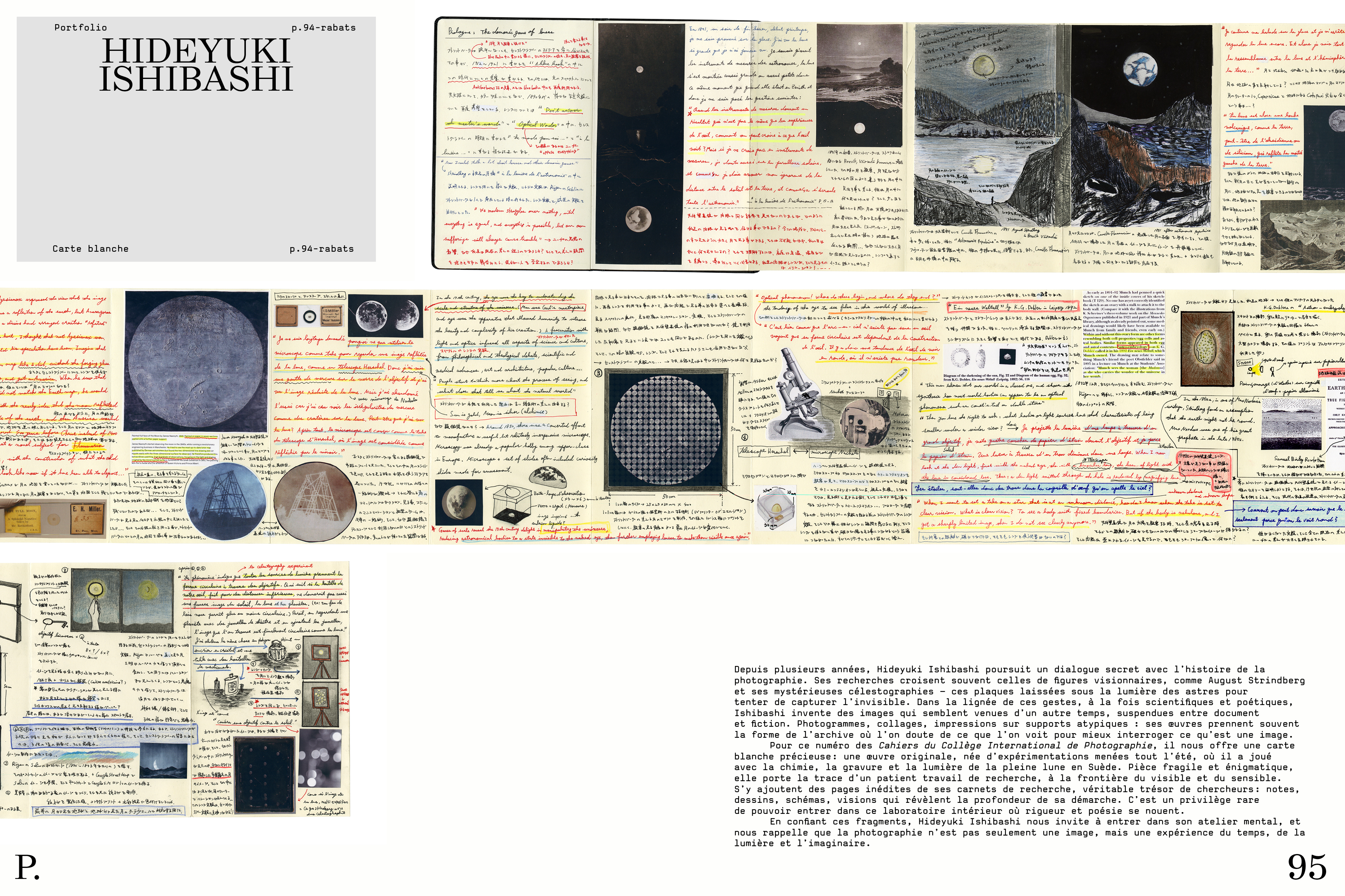 The Cahiers du CIP serve both as an editorial platform documenting the activities of the Collège International de Photographie (research grants, lectures, workshops, etc.) and as a meeting point between research-creation and technical know-how. Combining artistic experimentation with theoretical and historical inquiry, the Cahiers du CIP invite us to think, through photography, toward new imaginaries. Contributions stem from a wide range of perspectives—literature and poetry, artisans' testimonies, theoretical reflections, or artistic processes—all converging toward a shared photographic ground.