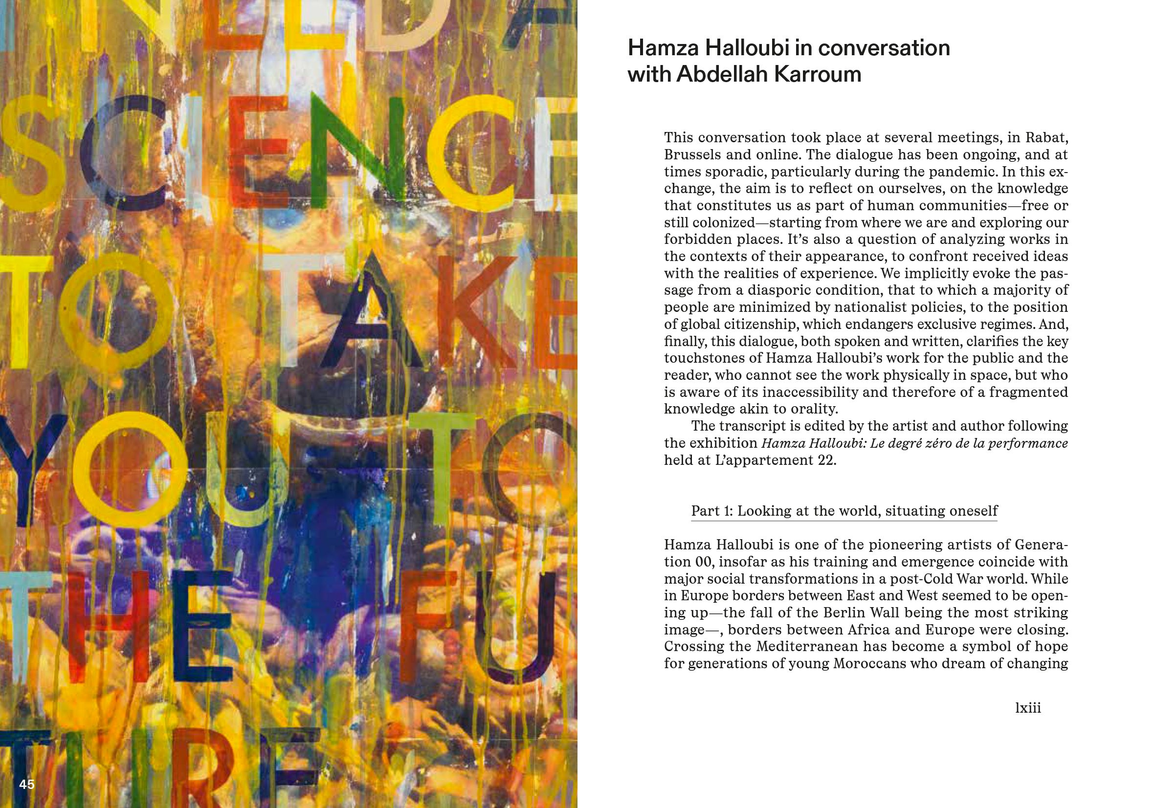 Edward Saïd, Mohamed Choukri, Félix González-Torres… How they also appear like ghosts in his work. Hamza Halloubi approaches the viewer of his visual work, and here also the reader, as a social and political presence. In addition to his diary and image fragments from his films and exhibitions, this pocket book also includes two interviews with the artist.