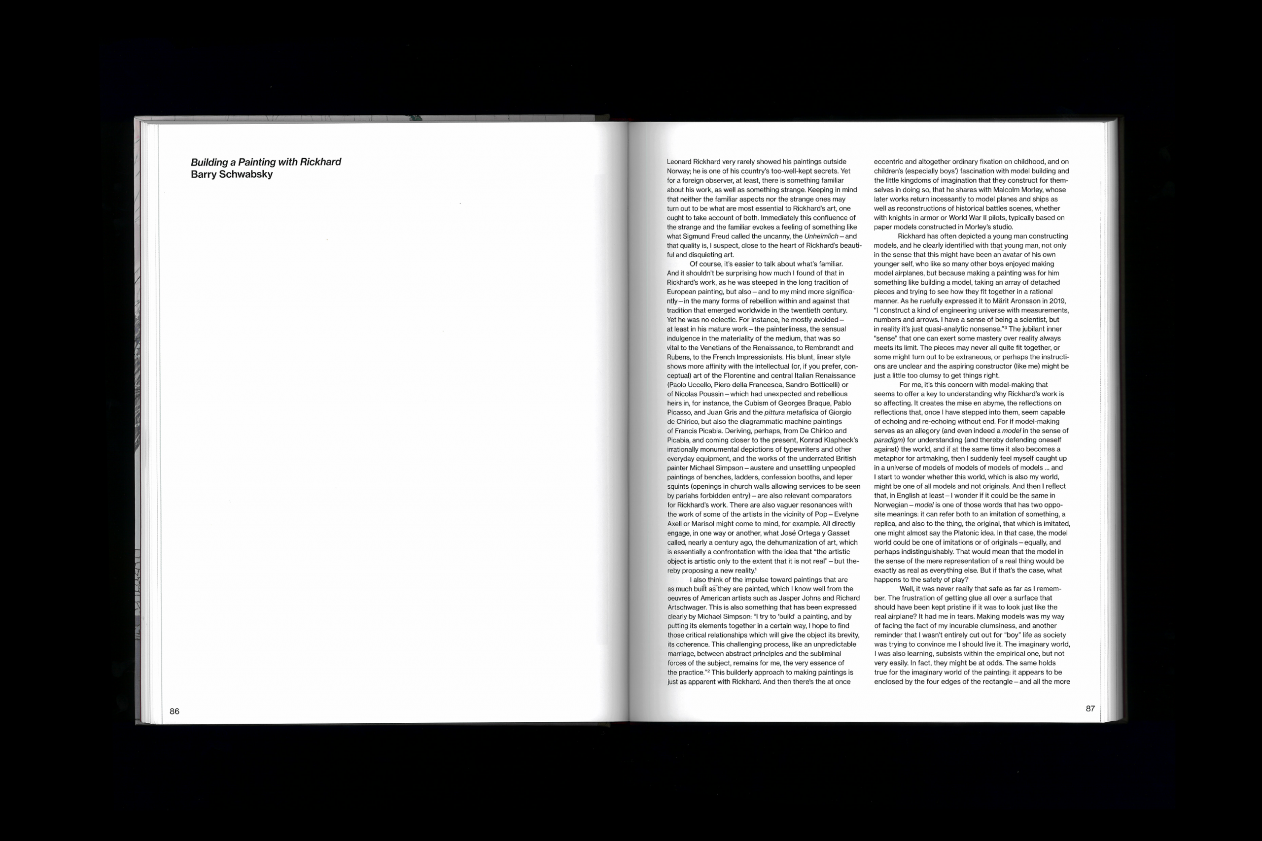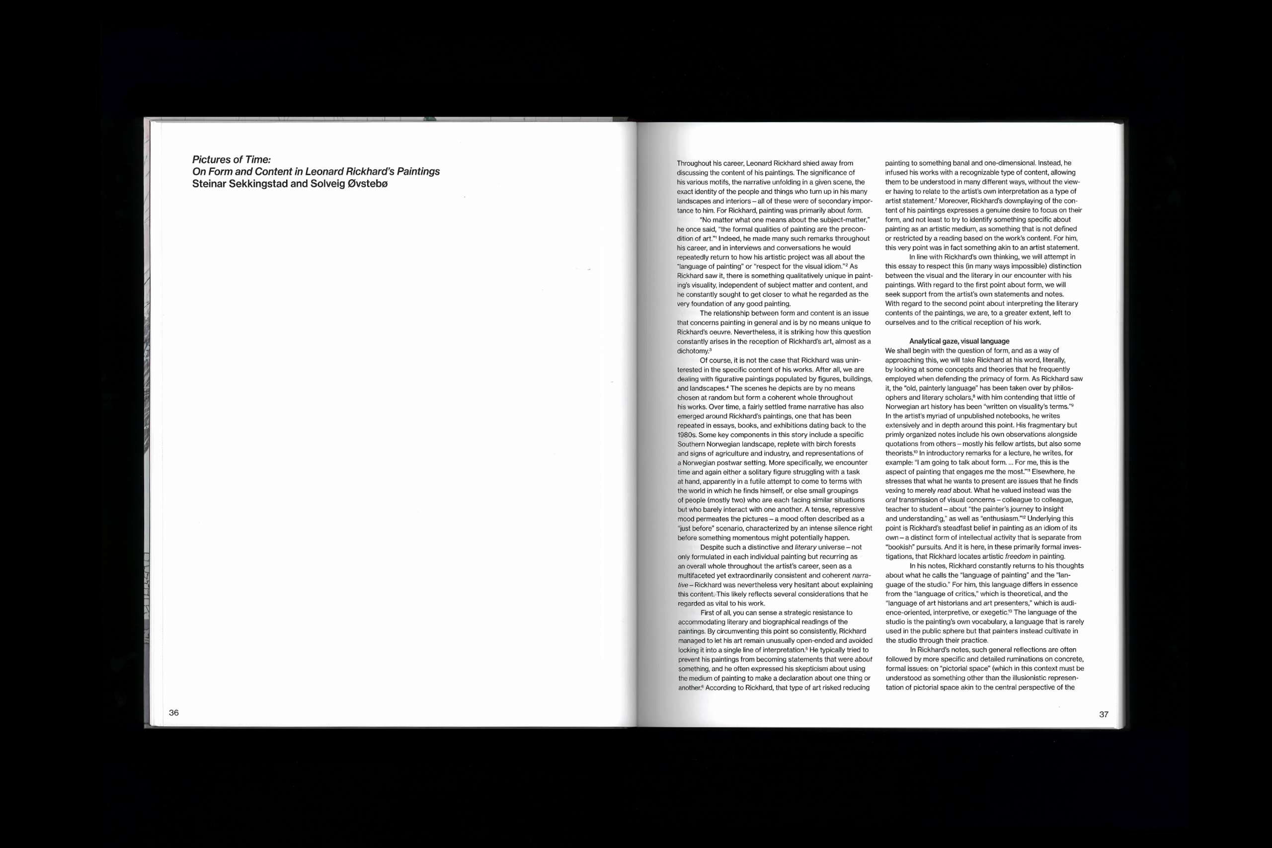 This publication is both a continuation of the exhibition presented at Astrup Fearnley Museet in 2024 and a significant new contribution to the evolving research on Leonard Rickhard's art. The book is richly illustrated with reproductions of his artworks, archival material, and photographs from the exhibition, and features newly commissioned essays that open up new perspectives on Rickhard's painterly universe.