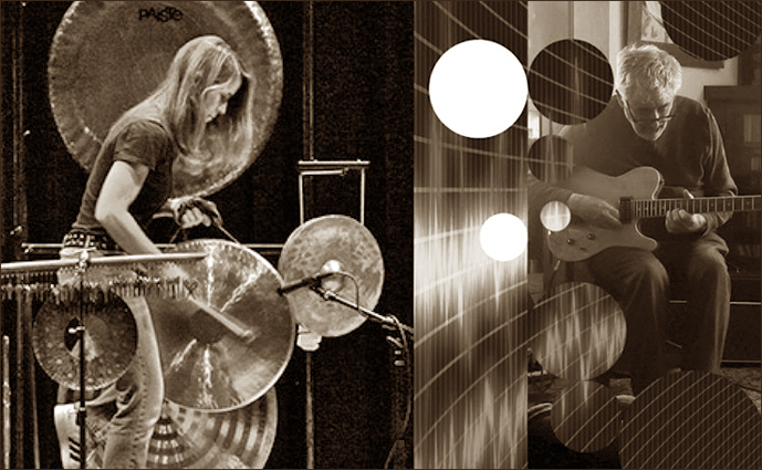 The meeting between Fred Frith's guitar strings and percussionist Karen Stackpole's gongs.