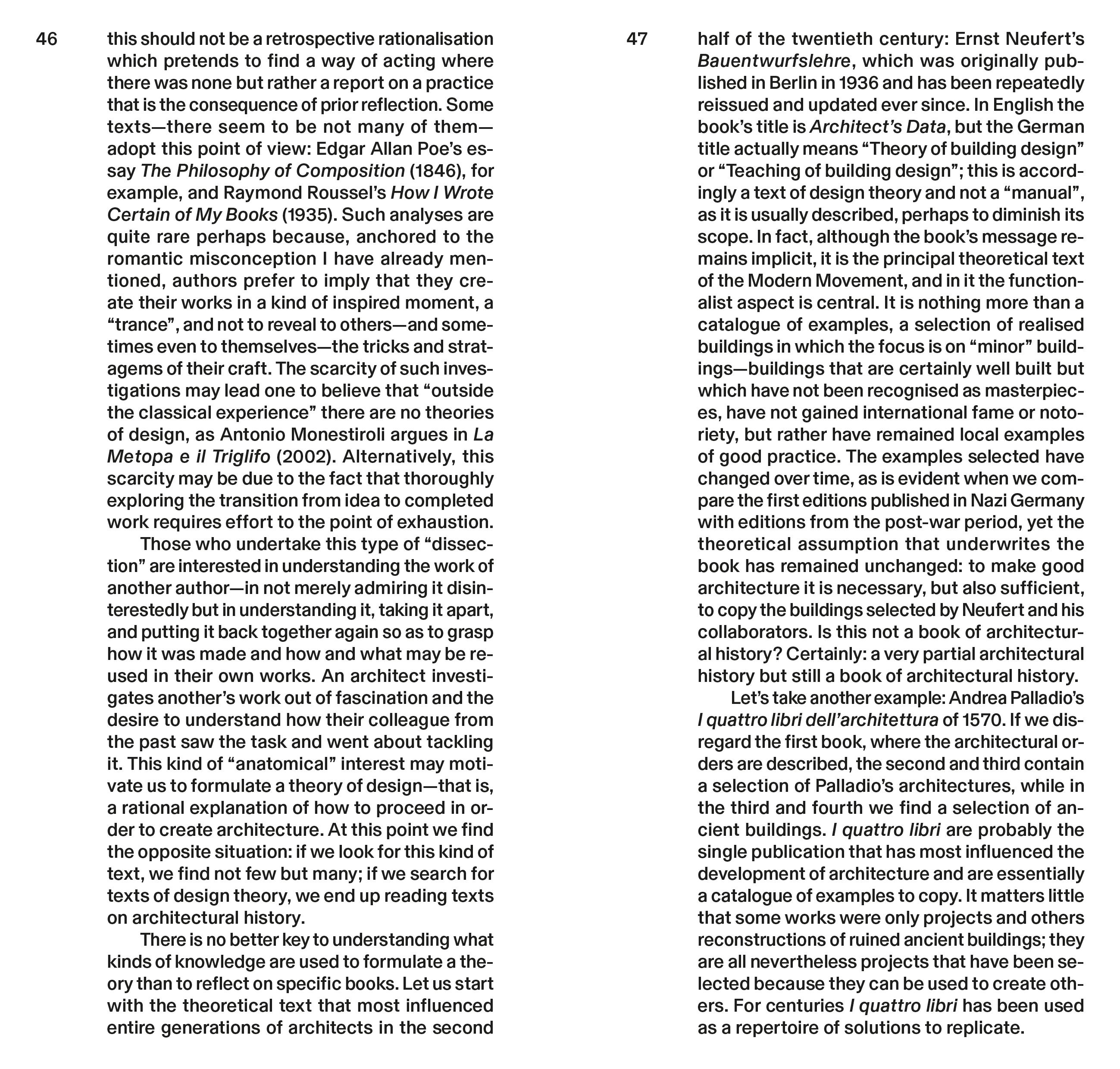 The crux of the argument made here is that the history of architecture should be recognised as the foundational matrix of architectural identity. Starting from this premise, the inquiry delves into the essence of architecture and design; it asks how this discipline can be taught and learned, what constitutes a theoretical text on design, and what defines architectural research. The book addresses those who, much like an architecture student, wish to "understand better".