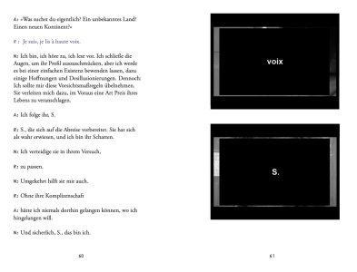 A key part of the publication comprises films created in French and German as part of the research project Choix d'un passé, in collaboration with Moïse Merlin Mabouna. These films are accompanied by textual and visual sequences from the video works S. – Je suis, je lis à haute voix and Erase them! – The image as it is falling apart into looks. The eBook also includes a playable film file and elements from the film performance Der erste Blick #1, created in collaboration with Angela Melitopoulos and Vassilis S. Tsianos.