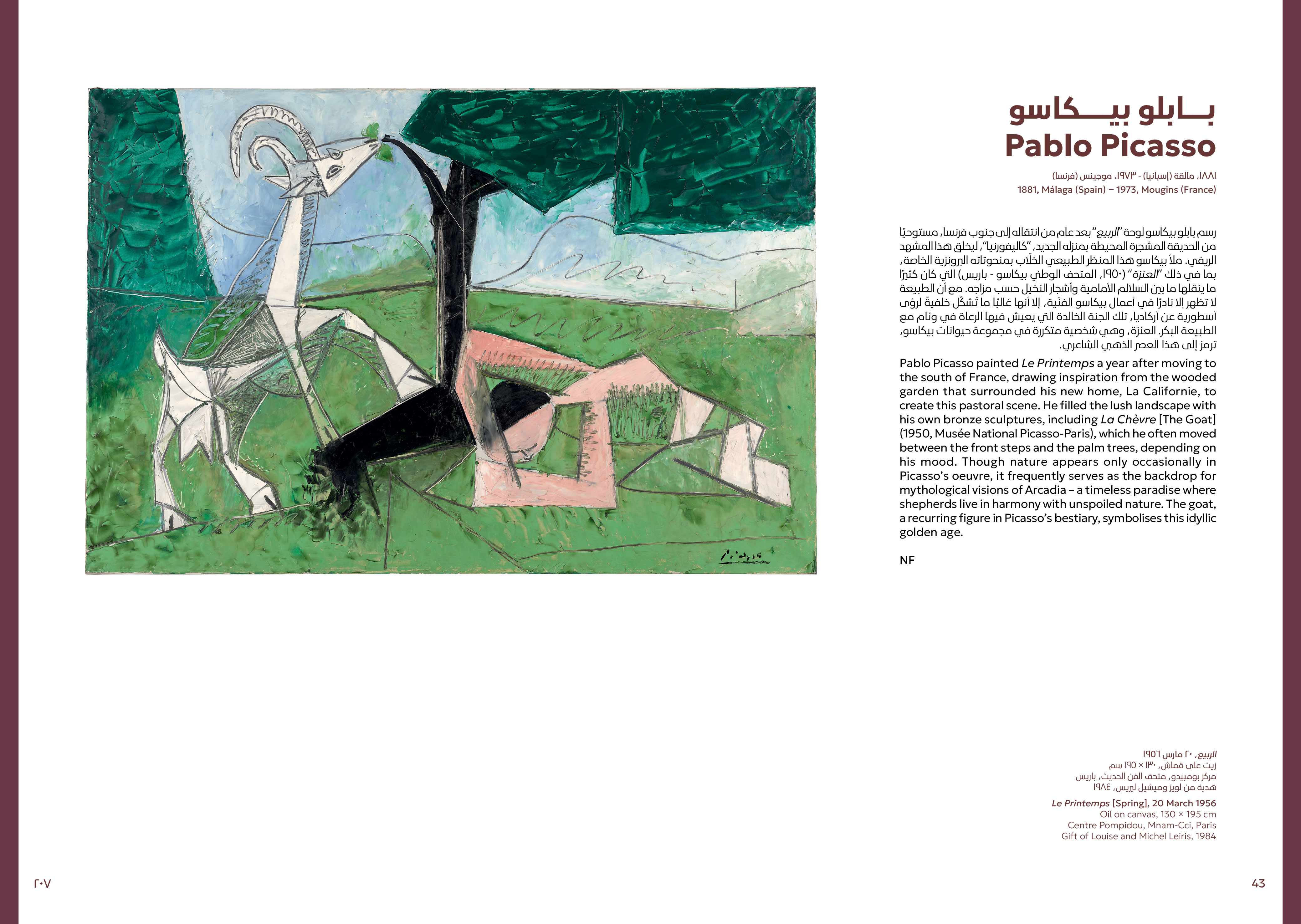 A spectacular journey through 80 major works of modern and contemporary art (by Picasso, Kandinsky, Joan Mitchell, and Hockney to Manal AlDowayan, Etel Adnan, and Imran Qureshi) in the future spaces of the Saudi Museum of Contemporary Art in AlUla, an oasis located on the ancient incense route, taking the image of the “garden in the desert” as a starting point for artistic reflection on the evolving relationship between humans and nature.
