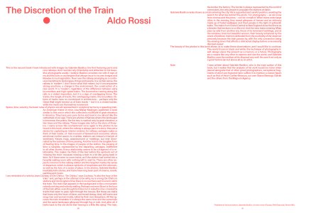 The volume brings together Basilico's photographs of Rossi's architecture for the first time, and is enriched by contributions from Chiara Spangaro and Pier Paolo Tamburelli, project notes by Rossi, as well as the writings that they dedicated to each other.