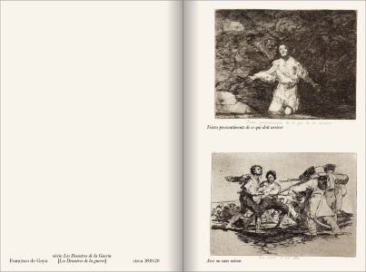 The catalogue is accompanied by a booklet, bringing together all the engravings from the Los Desastres de la guerra series by Francisco de Goya, conceived as a first extension of this printed archive.