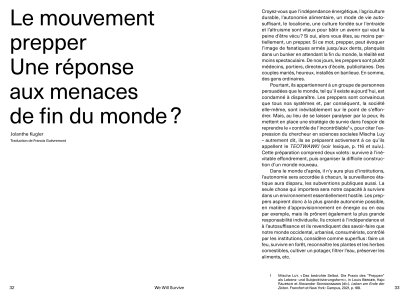 A collective reflection on the ability of objects and design to contribute to survival and protection against disasters, based on an examination of the phenomenon of “preppers”.