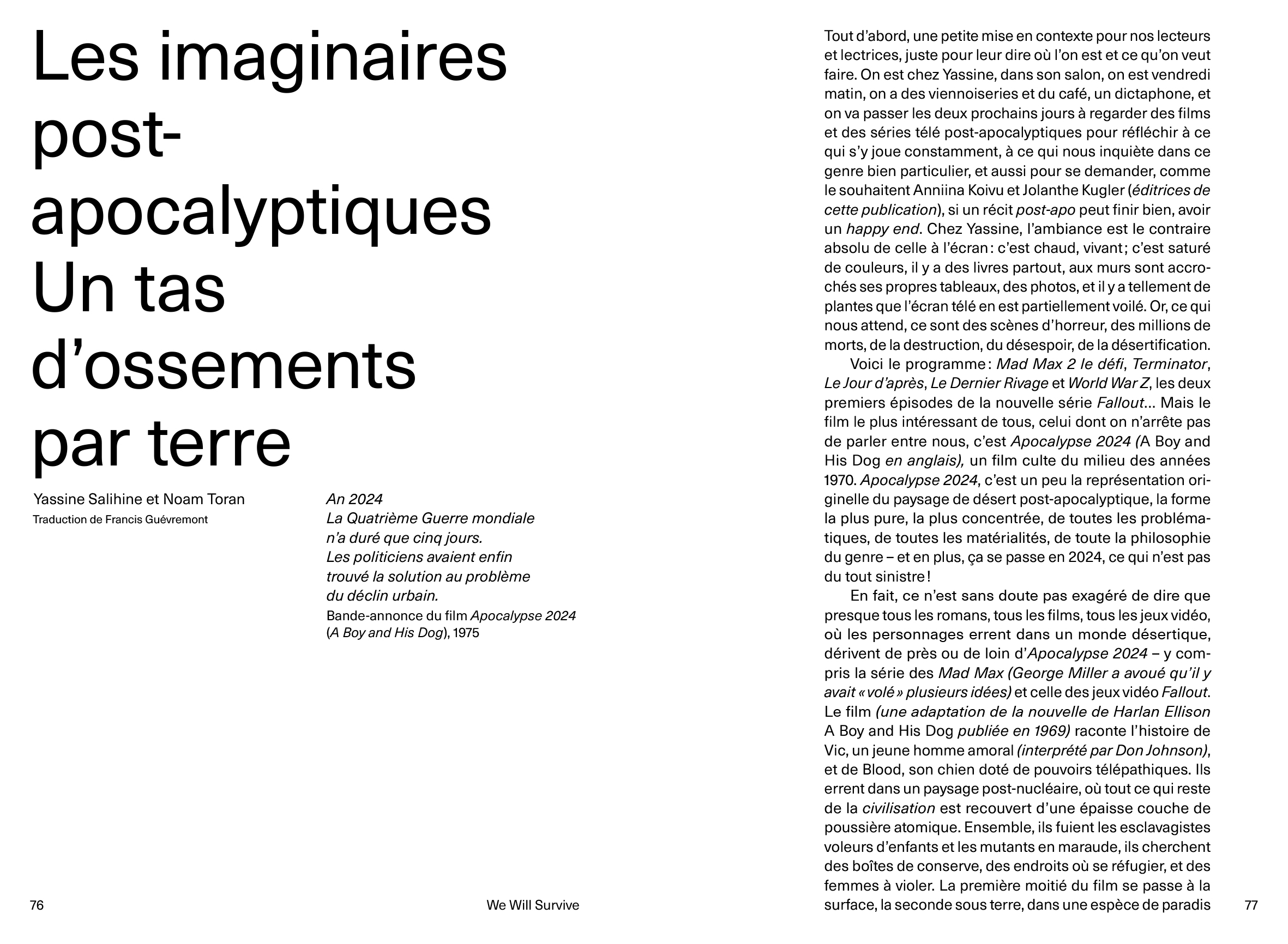 Texts by Patrick Gyger, Andrea Alberto Dutto, Noam Toran, Yassine Salihine, Eva Horn, Rebecca Solnit, Silvia Berger.