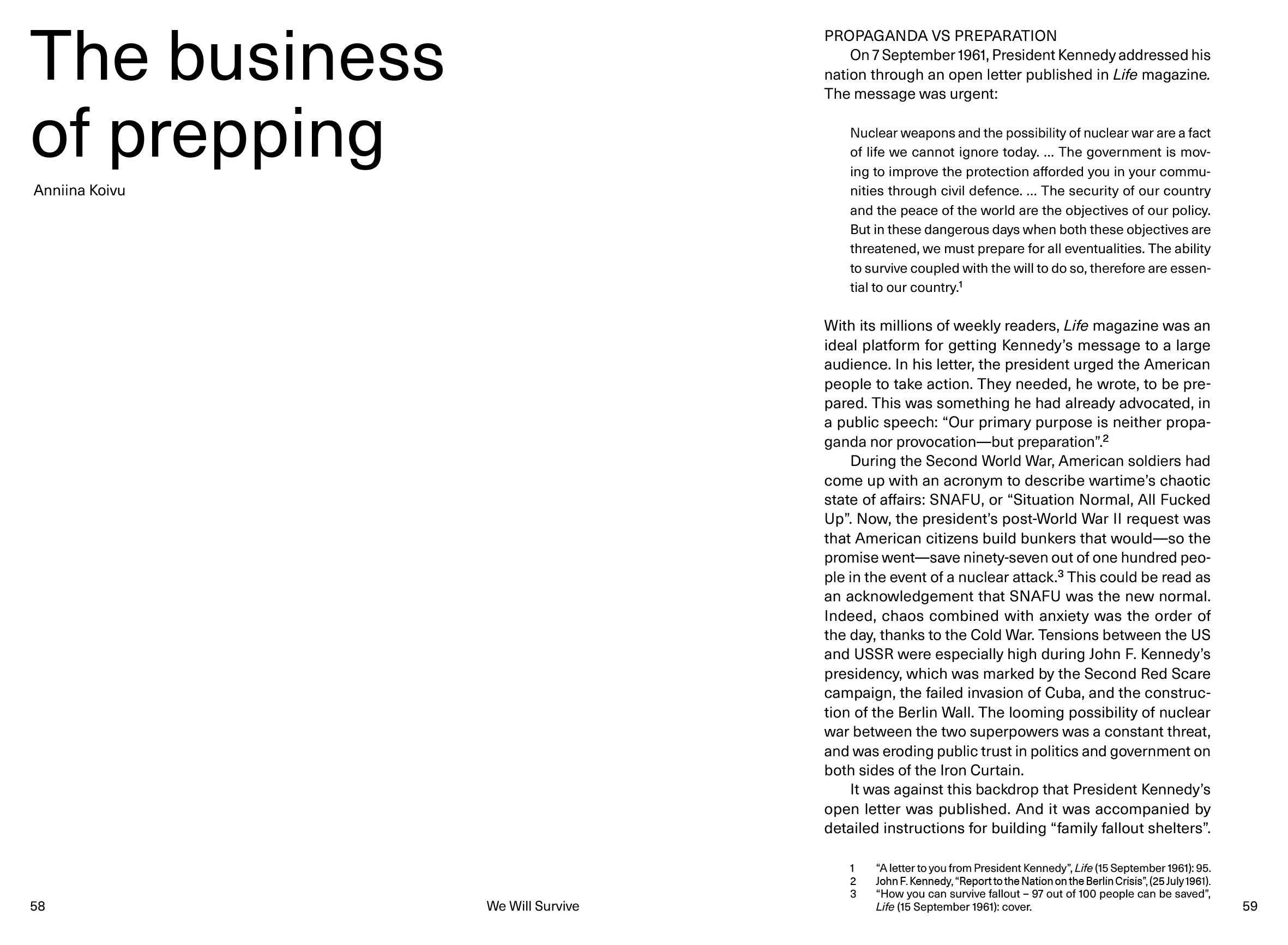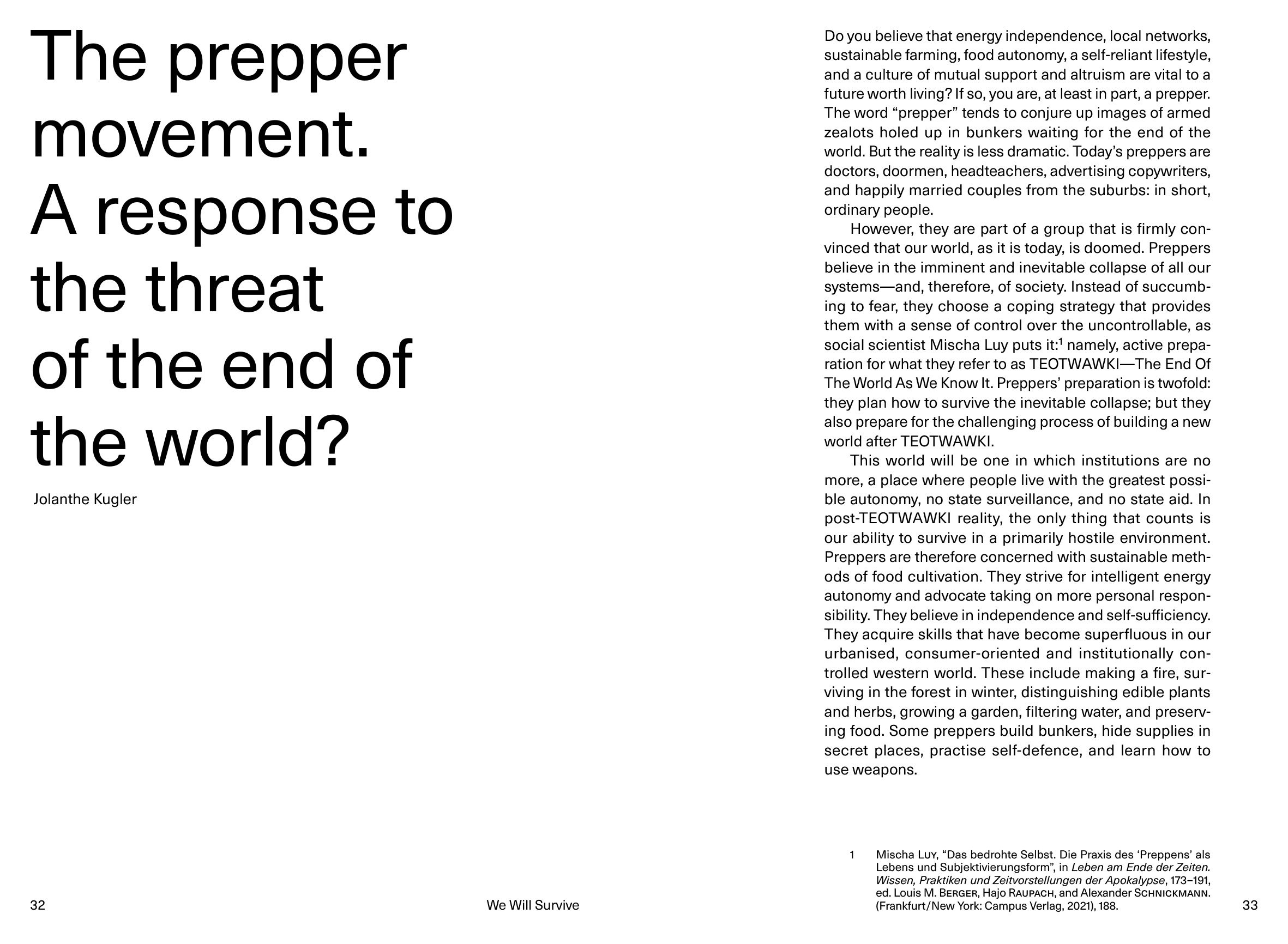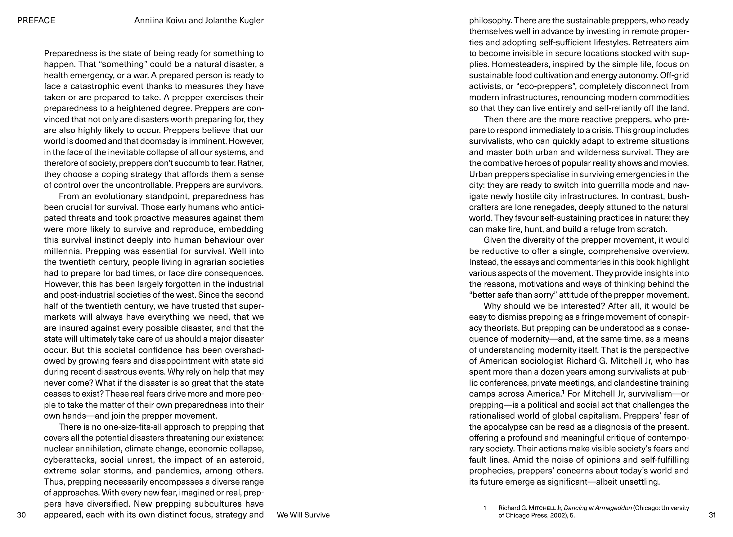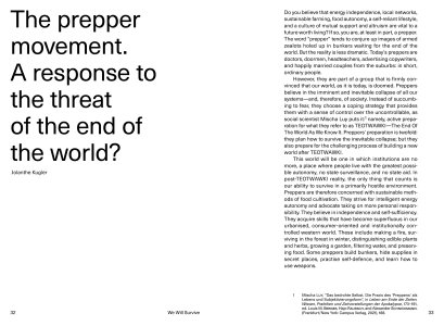 We Will Survive brings together the views of theorists, researchers, designers and preppers. The book explores the diverse mindsets and wide-ranging lifestyles of the prepper movement which was once considered marginal, but has now become a cultural phenomenon around the globe.