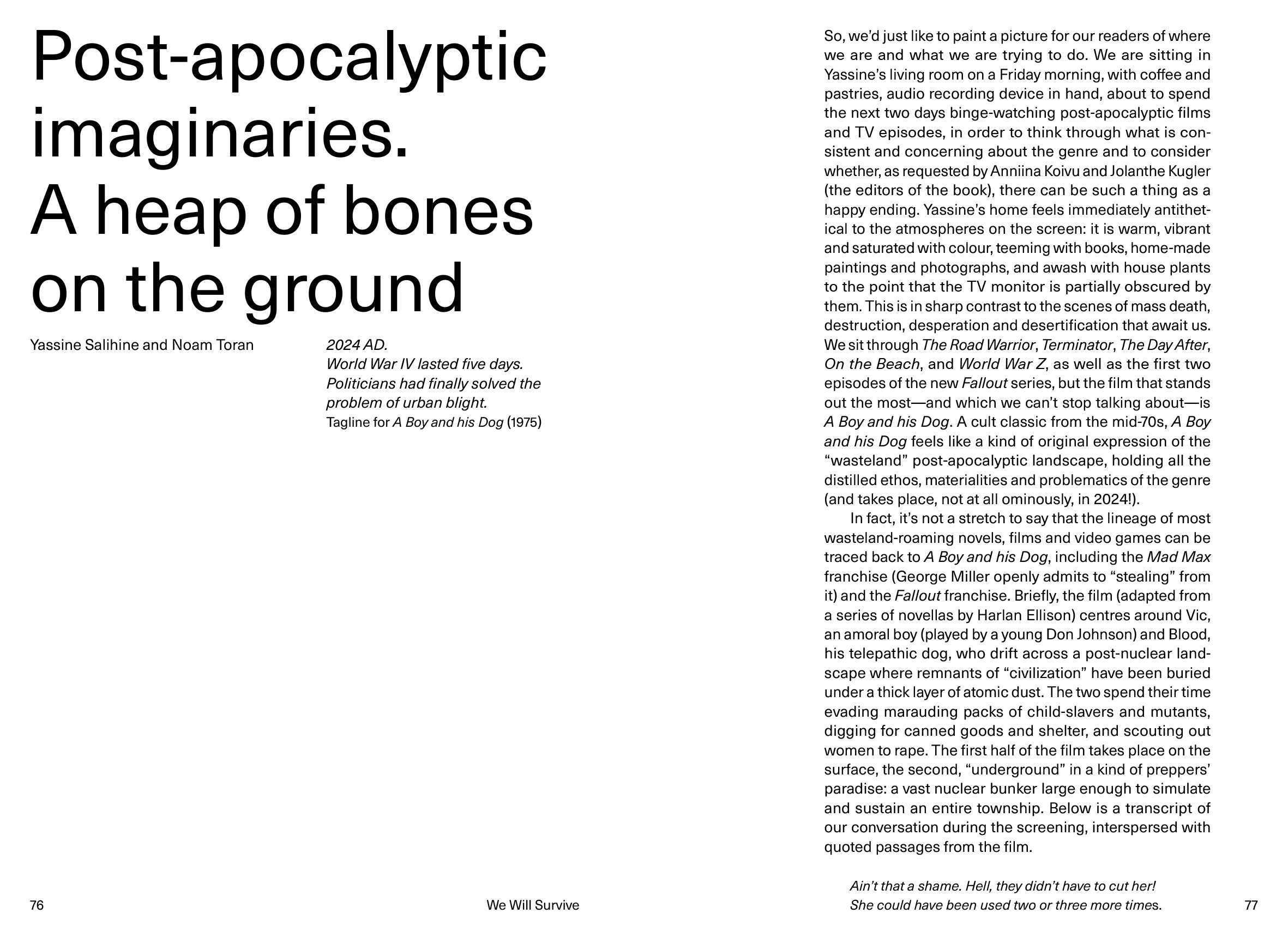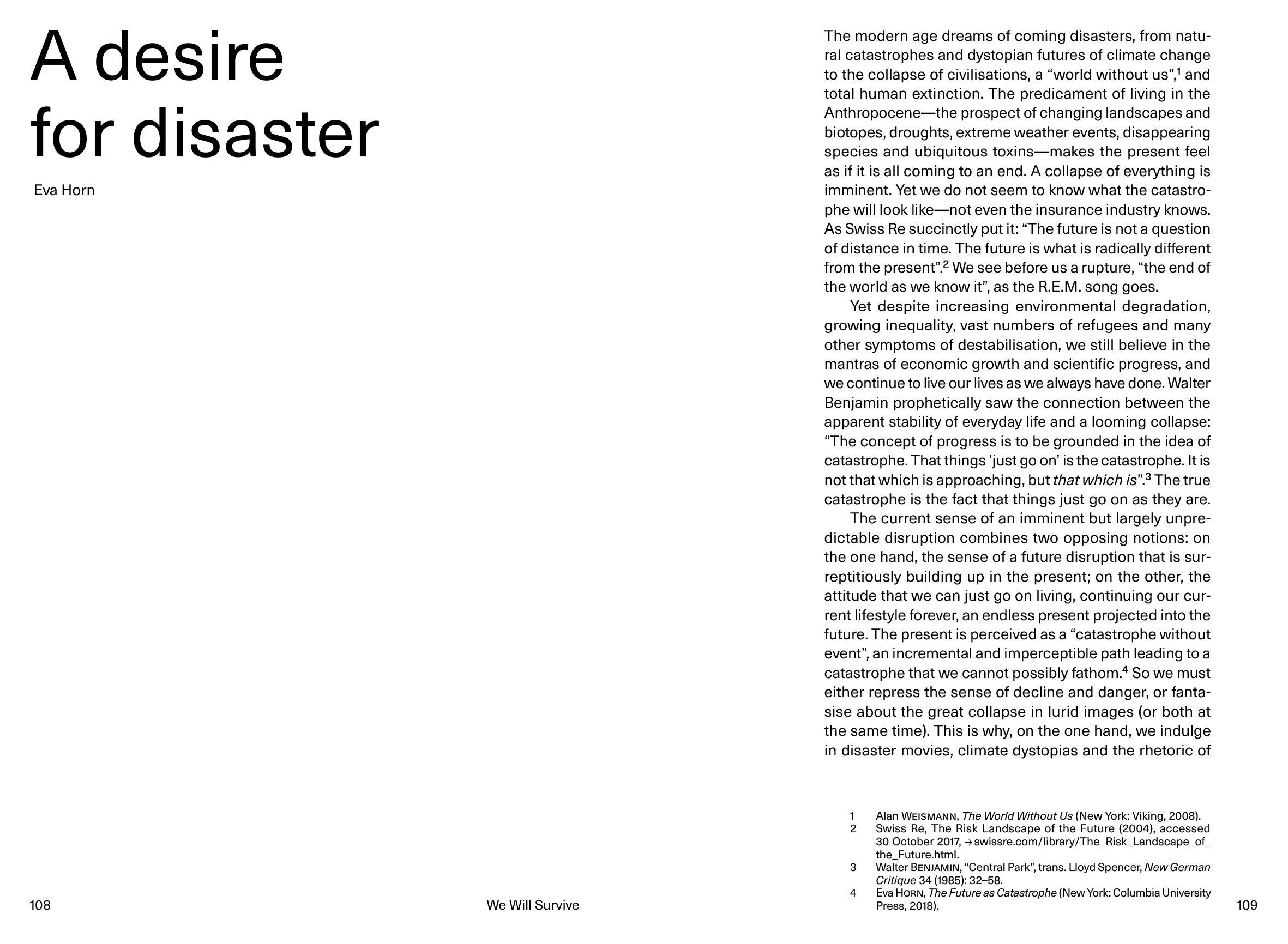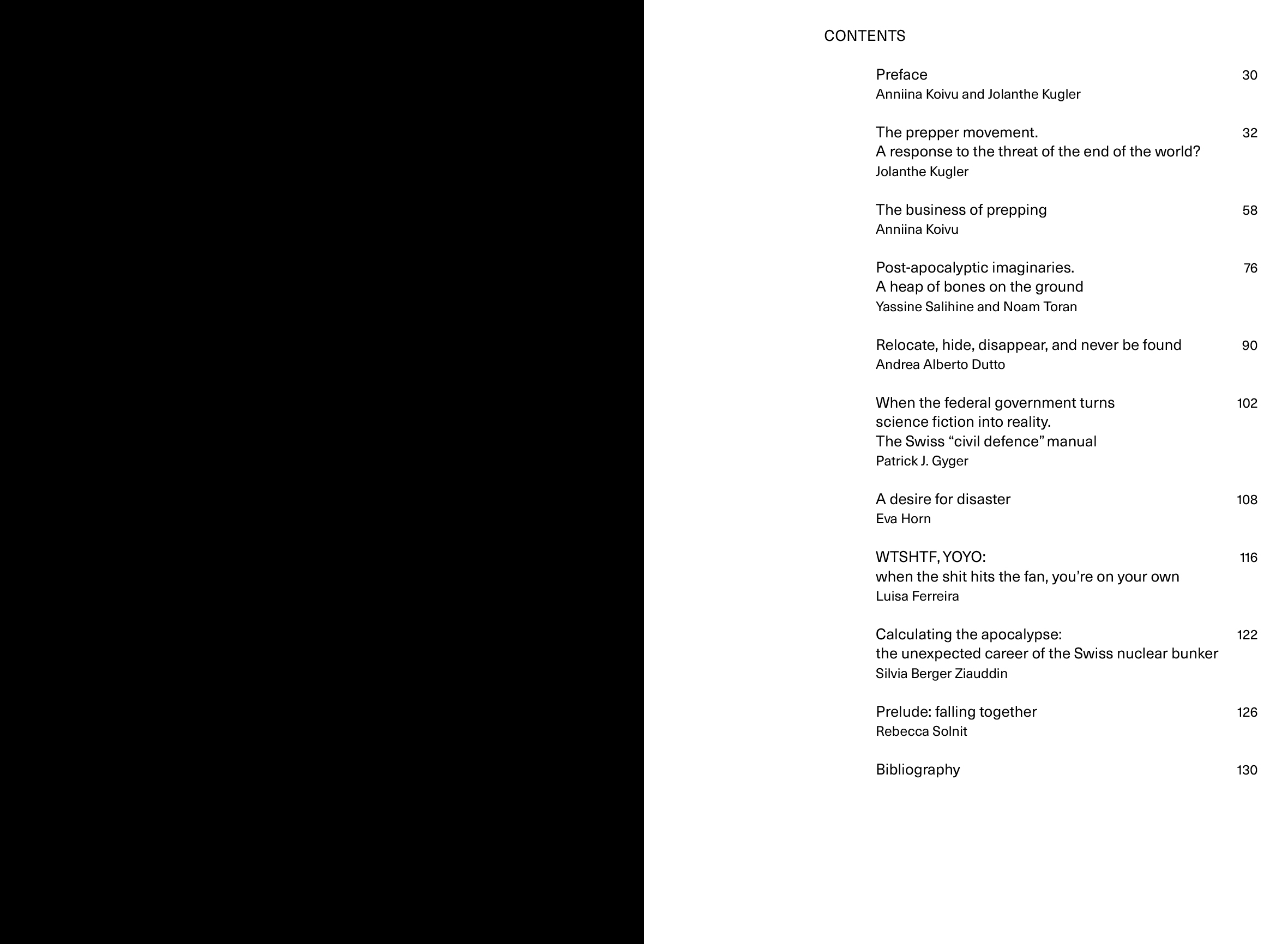 Texts by Patrick Gyger, Andrea Alberto Dutto, Noam Toran, Yassine Salihine, Eva Horn, Rebecca Solnit, Silvia Berger.