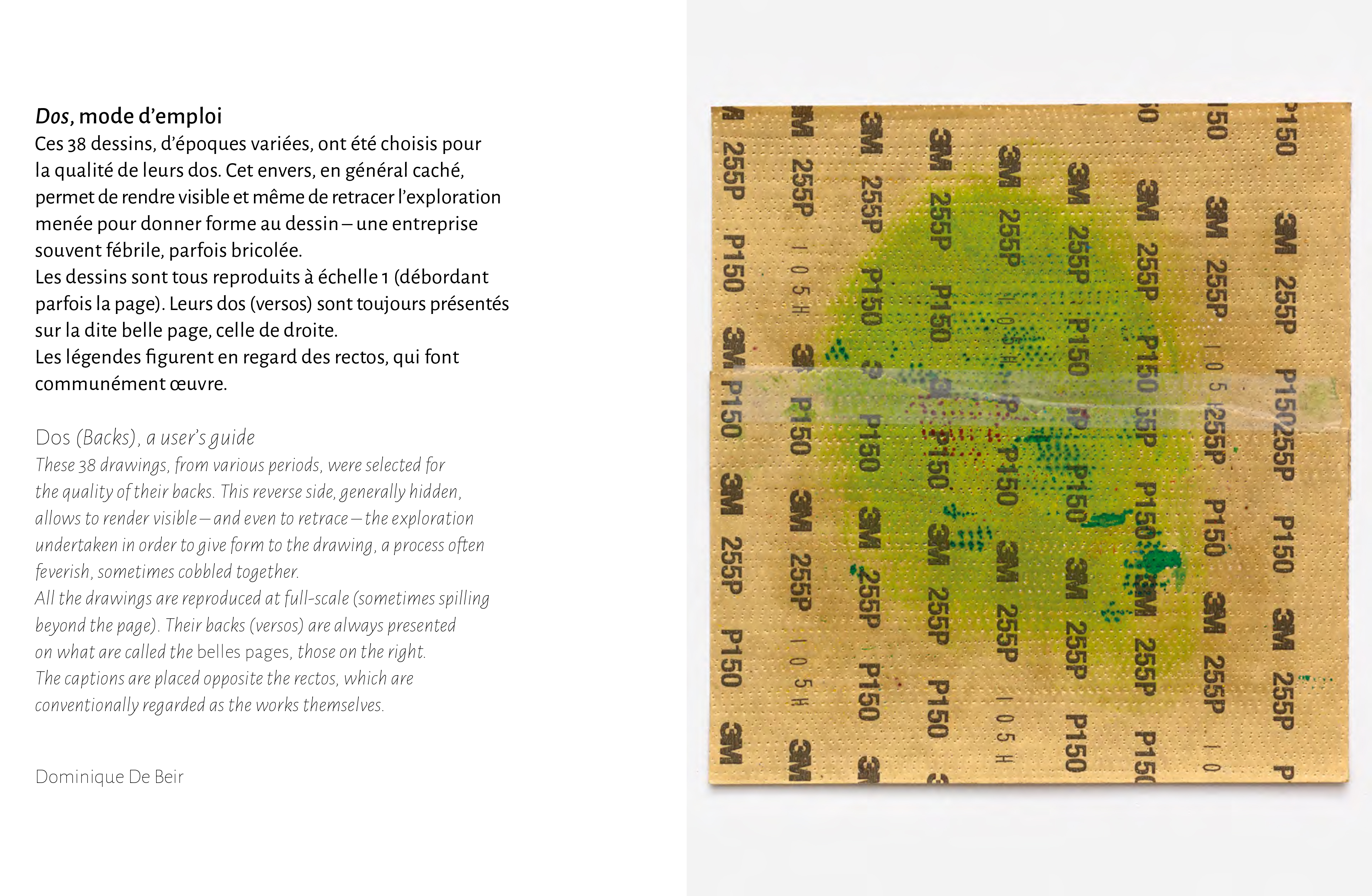 A book presenting for the first time the reverse sides of artist Dominique De Beir's works, revealing the exploration that went into giving shape to the drawings.