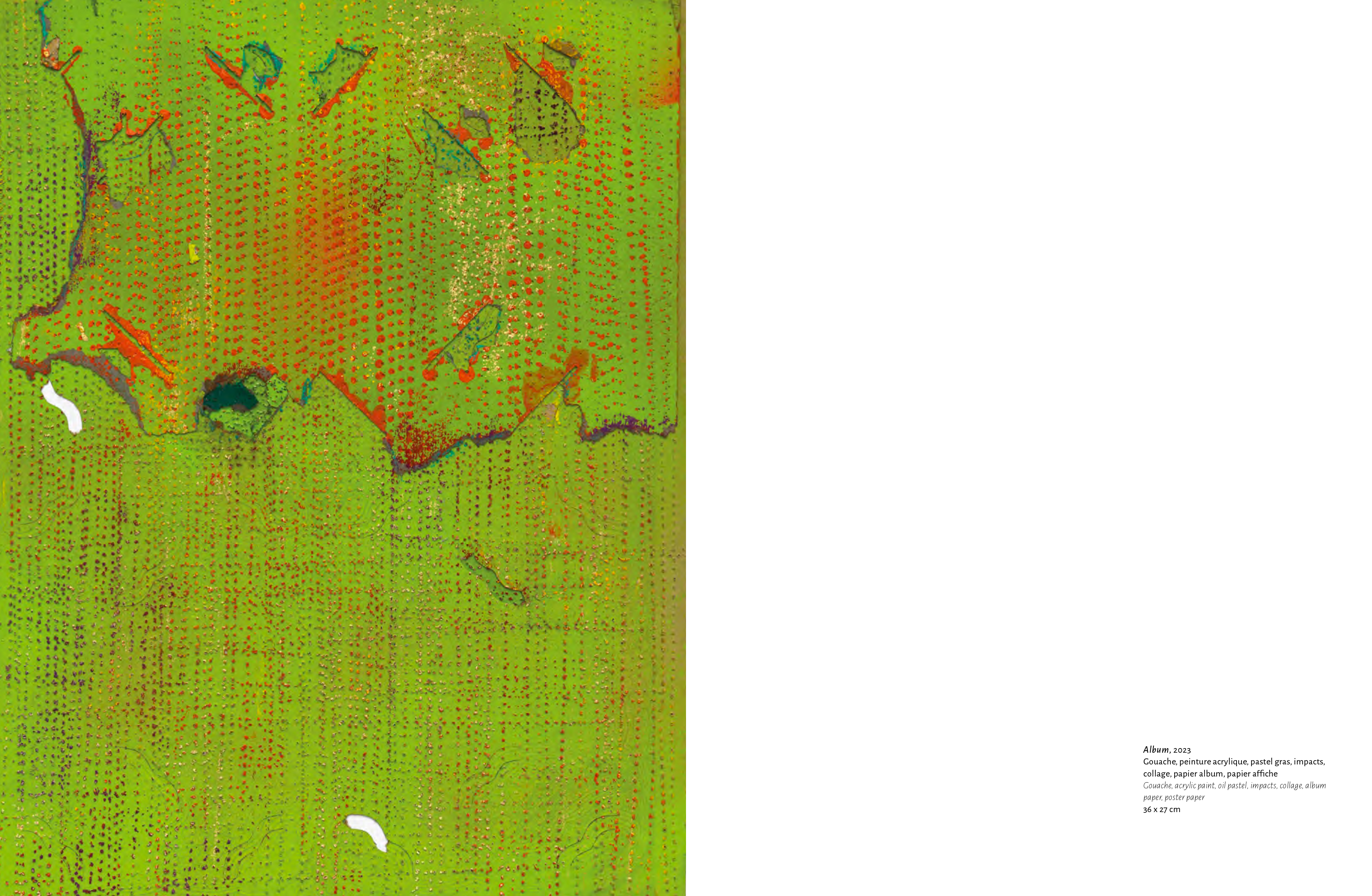 French artist Dominique De Beir (born 1964) uses unusual tools to cover paper supports with perforations. She pursues the vital energy of her creative process and impulsive acts without constraints until the surface itself disappears for the benefit of its own depth. By the repetitive and relentless character of her actions, the artist gives to her work a ritual and choreographic dimension. Her work has been exhibited in France, the Netherlands, Italy, Great Britain, and Germany, and her works are included in a number of public and private European collections.