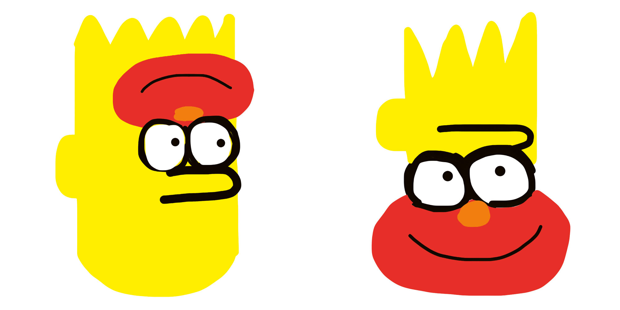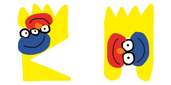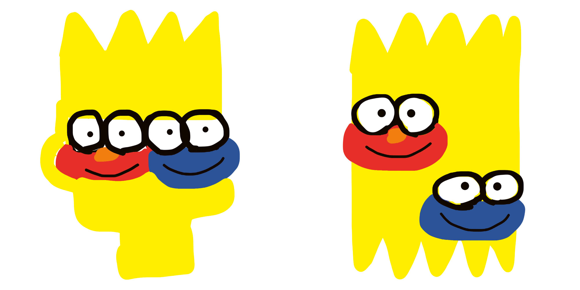 Ken Kagami creates distorted portraits by combining Bart Simpson with Sesame Street characters Elmo and Cookie Monster, in a tiny artist's book.