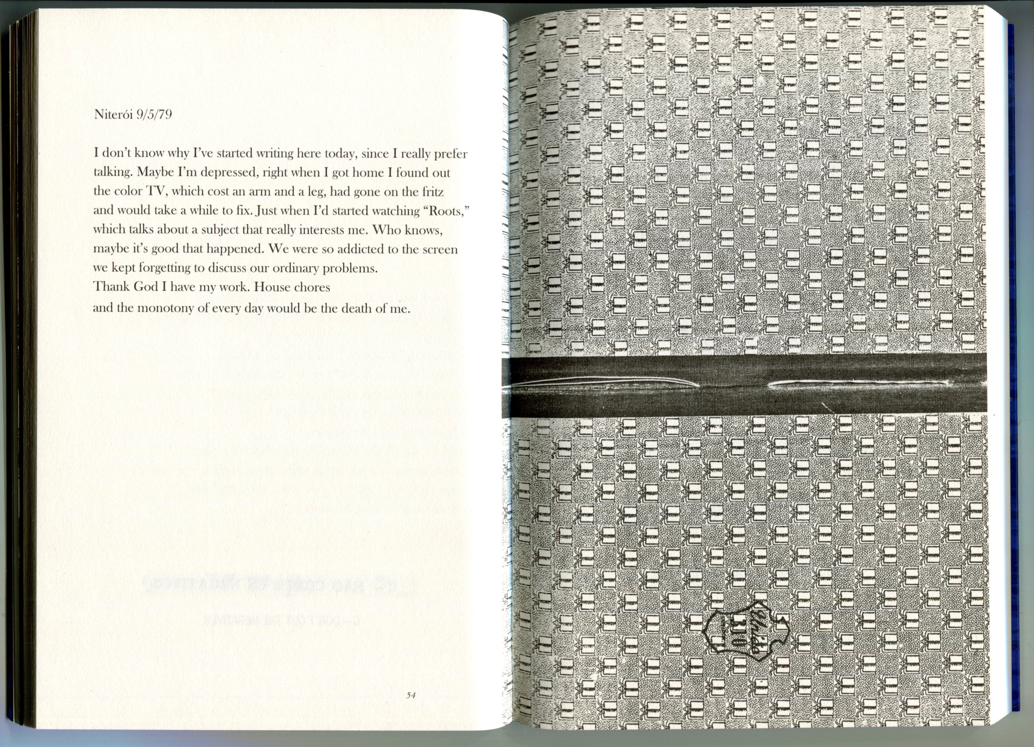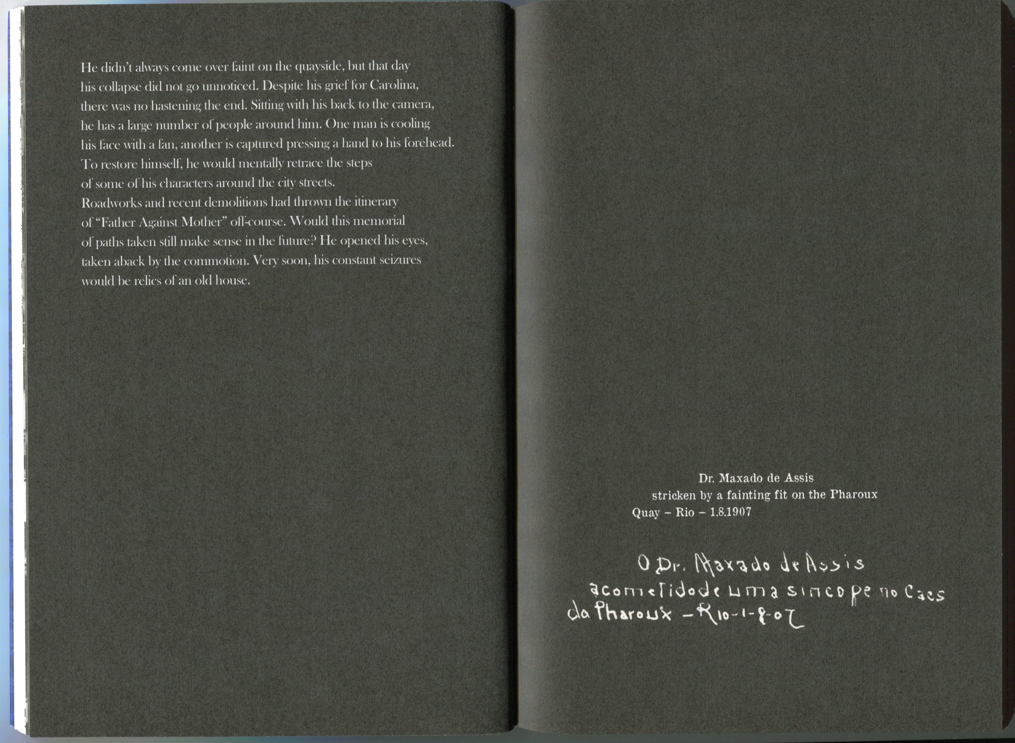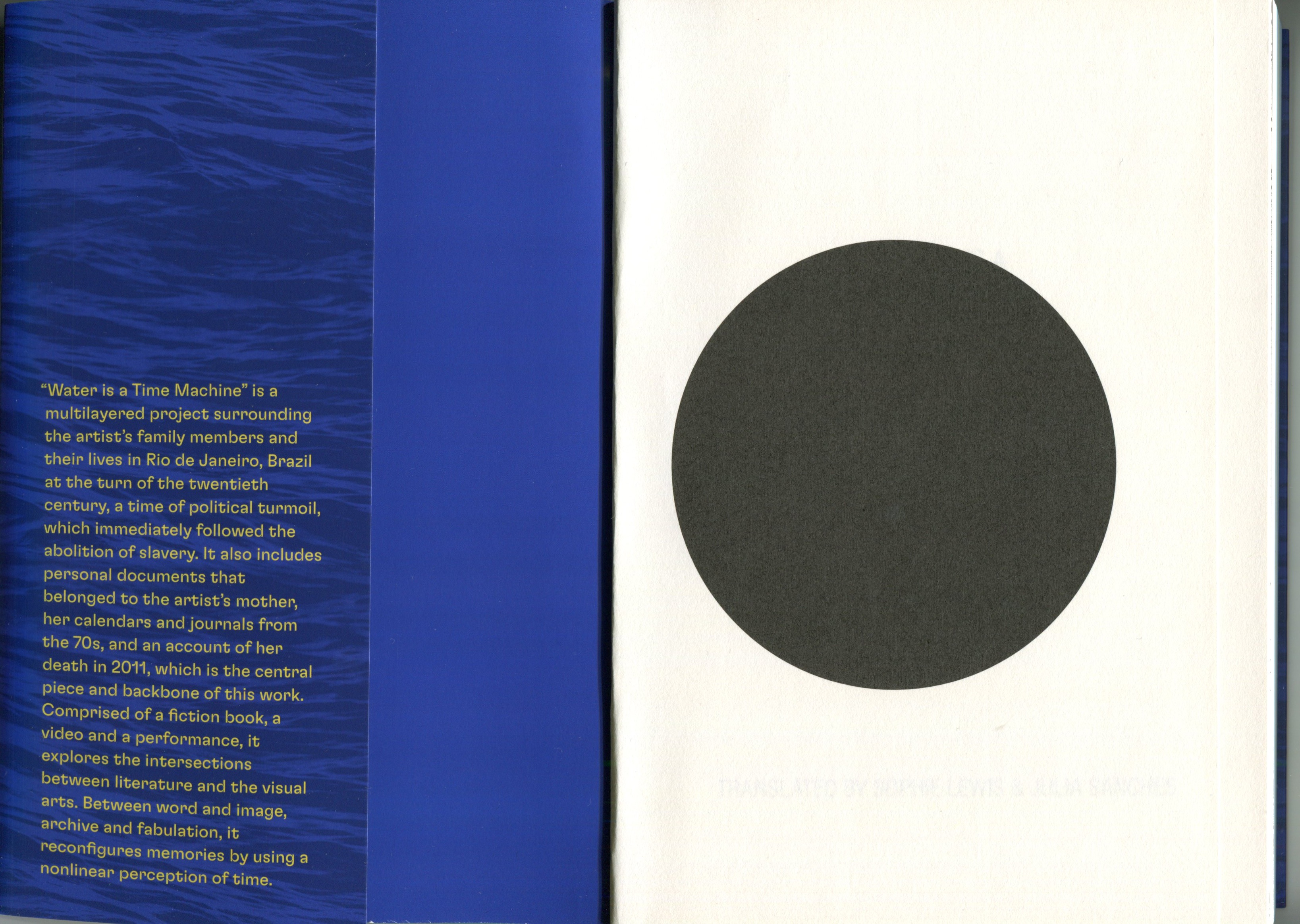 Water is a Time Machine is a multilayered project surrounding the artist's family members and their lives in Rio de Janeiro at the turn of the twentieth century, a time of political turmoil, which immediately followed the abolition of slavery. It also includes personal documents that belonged to the artist's mother, her calendars and journals from the 70s, and an account of her death in 2011, which is the central piece and backbone of this work. Comprised of a fiction book, a video and a performance, it explores the intersections between literature and the visual arts. Between word and image, archive and fabulation, it reconfigures memories by using a nonlinear perception of time.