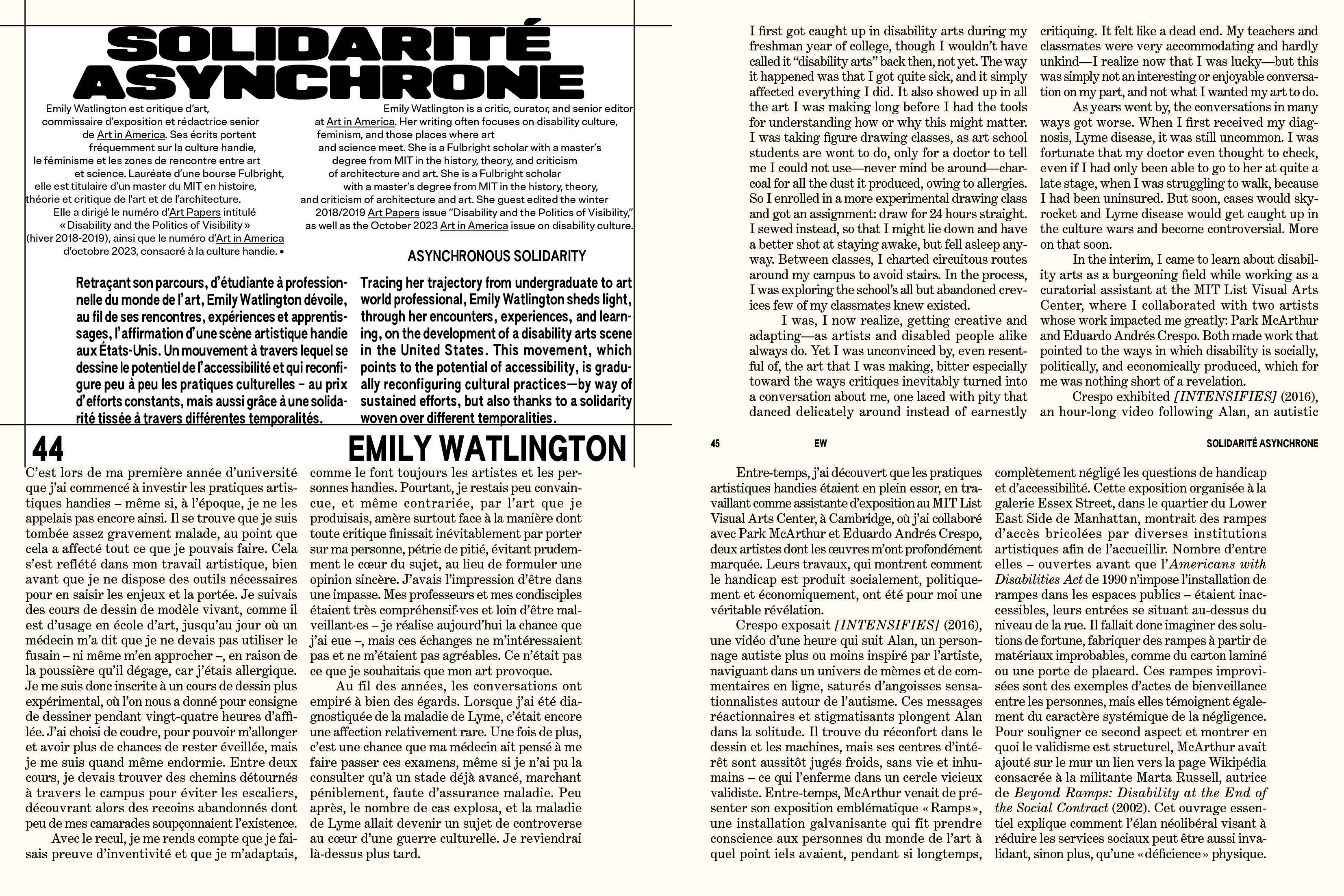 Issue 40 of the magazine of the Palais de Tokyo features a constellation of artists and critical thinkers whose practices are shaped by the lived experiences of disability and issues of accessibility.