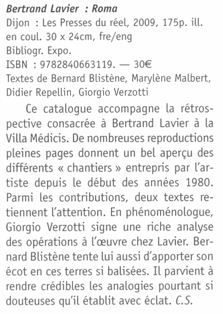Published on the occasion of Bertrand Lavier's exhibition at Villa Medicis, Rome, January - March, 2009.