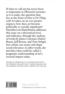 At the heart of “How to Do Things with Art” lies the question of art's relevance to society. How does art become politically or socially significant? This book attempts to answer this question on a theoretical level, and to indicate, through the analysis of works by James Coleman, Daniel Buren, Jeff Koons, and Tino Seghal, how artists can create and shape social relevance; in other words, to provide what could be called a pragmatic understanding of art's societal impact. The title of the book itself is a play on John Langshaw Austin's seminal lecture series “How to Do Things with Words,” in which he discussed the performative, or reality-producing, capacity of language.