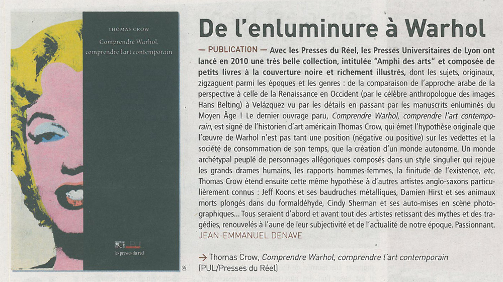Thomas Crow aims to explain what makes Warhol a precursor and a virtual paragon of the contemporary artist.