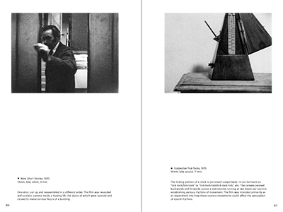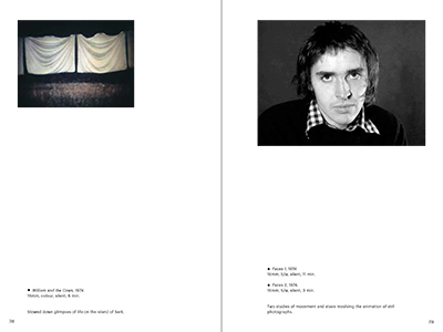 Conceived and designed in collaboration with the artist, this publication includes a complete fully illustrated filmography spanning 84 pages, with images and synopses from nearly fifty film and video works made between 1972 and 2012.