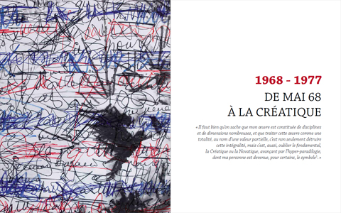 Isidore Isou (1925, Botosani, Romania – 2007, Paris), the ingenious Romanian poet, artist, economist, novelist, film-maker, choreographer and theoretician, created in 1945 the last avant-garde movement to attempt to overthrow everything – Lettrism, a movement that would embrace personalities as diverse as Gabriel Pomerand, Maurice Lemaître, Gil J Wolman and Guy Debord. Isou is the author of a huge body of work centered on the act of creation, for which he proposed a method, Creatics, which is a systematic approach to understanding and grasping the mechanics of creation.