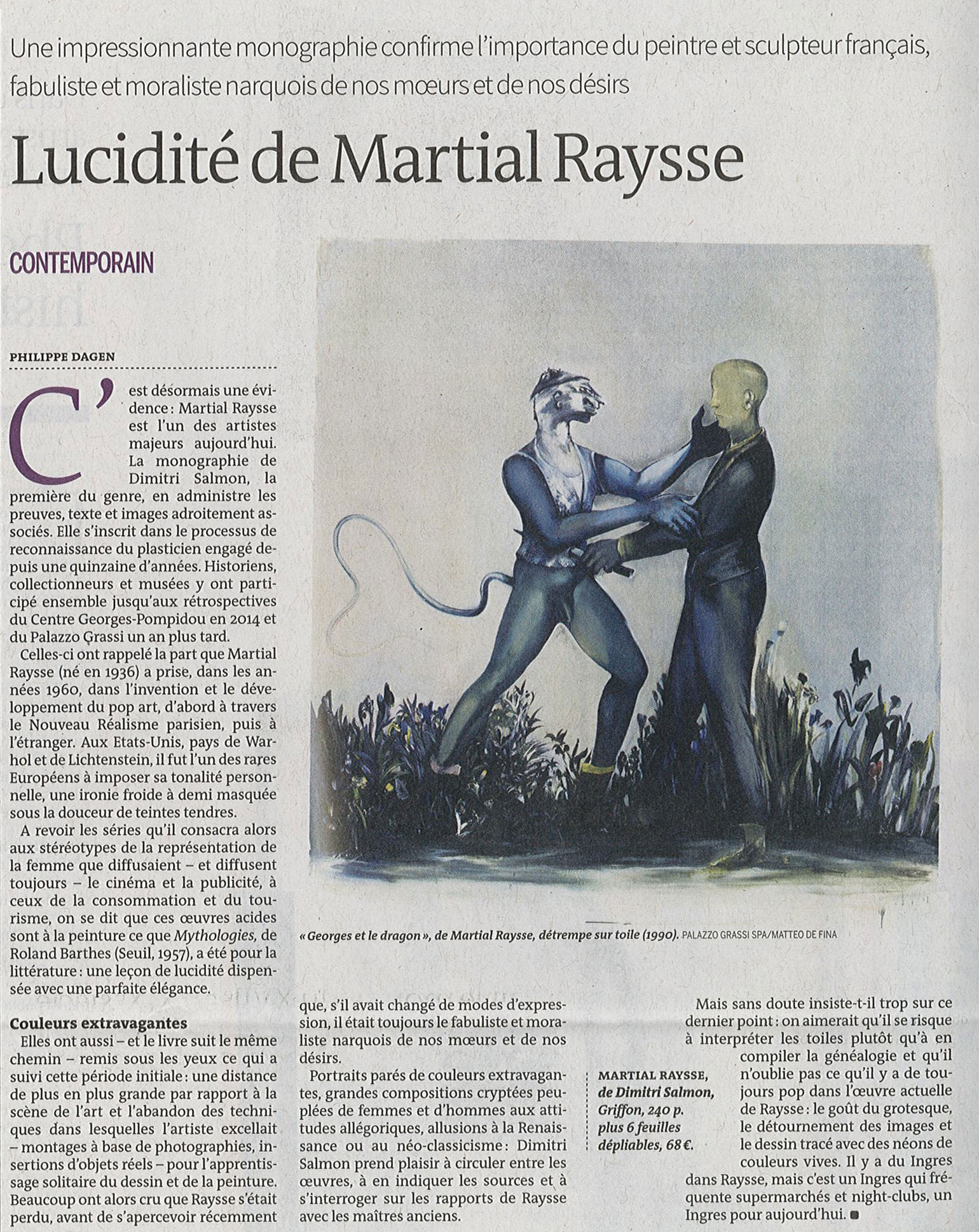 Martial Raysse's reference monograph: a comprehensive, luxurious and lavishly illustrated publication recounting Raysse's multiple pictorial metamorphosis since 1957.