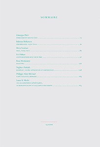 promotes the works of modern and contemporary artists (Barbad Golshiri, Ziad Antar, Julien Audebert, Abbas Akhavan, Jordi Colomer, Mitra Farahani, Shezad Dawood, Bahman Mohassess, Marwan…), rediscovered writers and untranslated authors in French (Zeynep Çelik, Laura U. Marks, Sohrab Sepehri, Etel Adnan, Giuseppe Pitrè…).