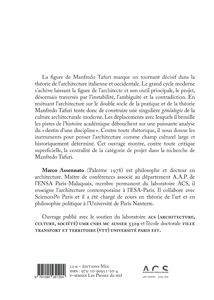 A genealogy of modern architectural culture through an analysis of the project both theoretical and practical of the Italian architect, historian and critic of architecture Manfredo Tafuri (1935-1994).