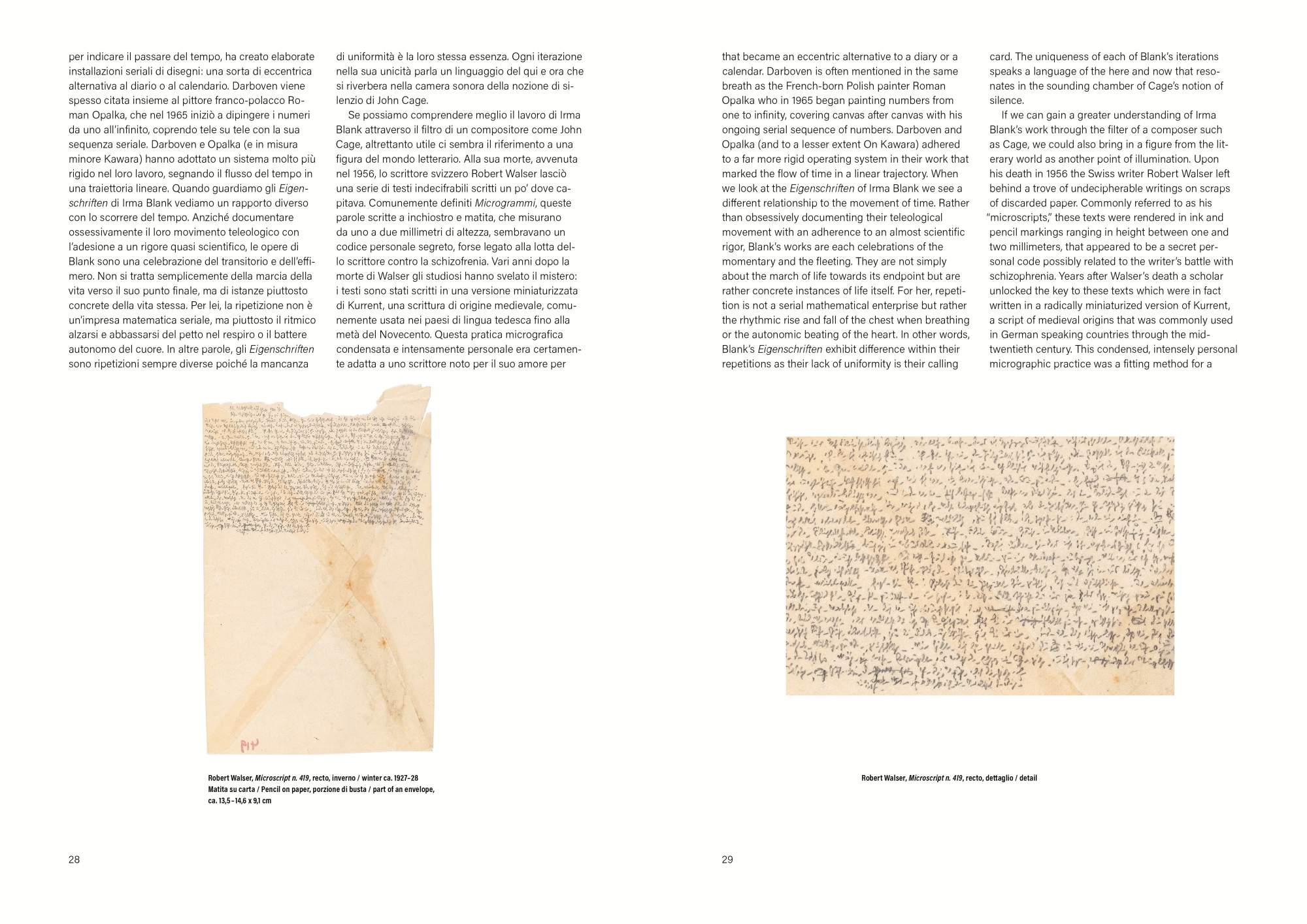 Luca Lo Pinto examining the artistic and historical influences on Blank's cycle of drawings, considered “an exercise of subtraction to reach a basic form of writing,” while Douglas Fogle's essay looks at Blank's work through the lens of artists such as