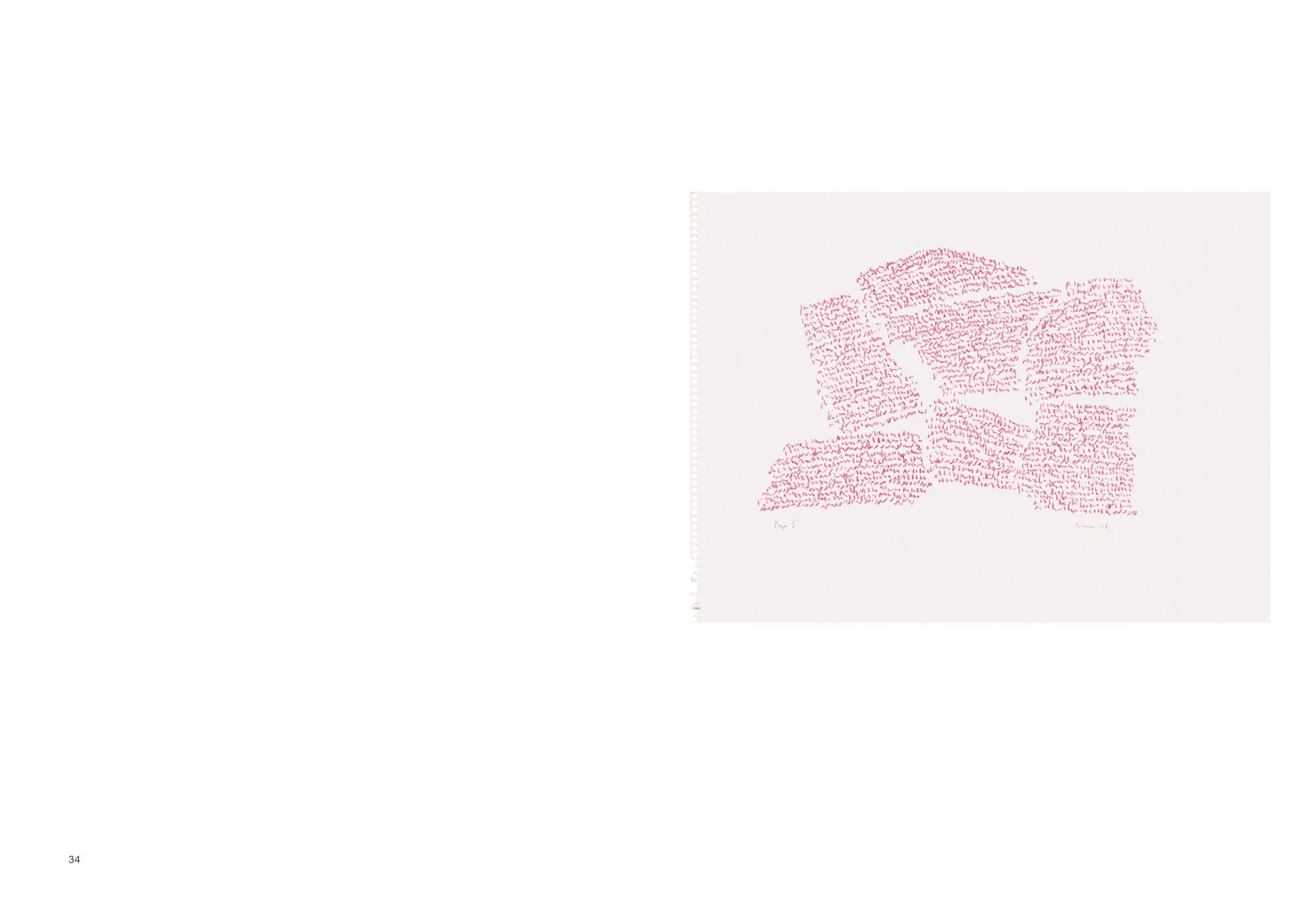 Mirtha Dermisache or Hanne Darboven. Her practice is envisioned as a total sensory cycle including sight, hearing (audio recordings of her readings), touch (manipulative drawings), as well as bodily presence with performed actions and readings. She participated in documenta 6 in Cassel in 1977 and in the Biennale of Venice in 1978. Like many women artists of her generation, Irma Blank received late recognition. Her works are present in the collections of a large number of international museums.