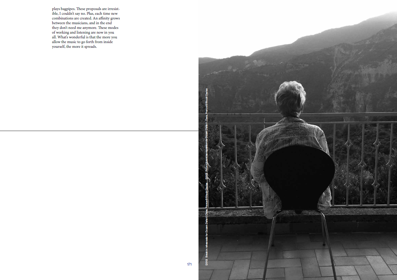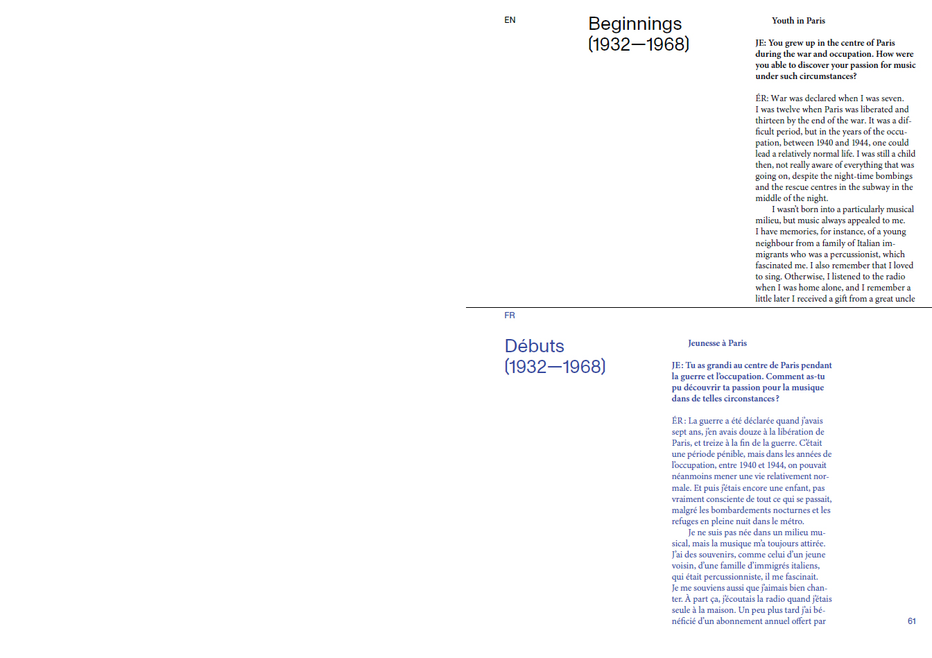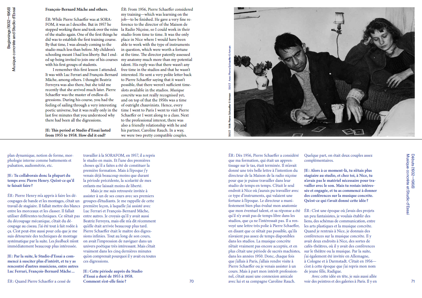 In the long interview that forms the body of this publication, Éliane Radigue talks about her work, her reflections and underlying research, as well as her historical context. The publication also contains a commented list of works and Radigue's programmatic text on The Mysterious Power of the Infinitesimal.