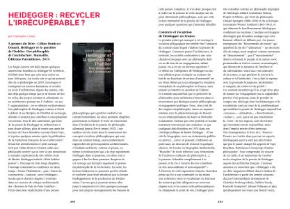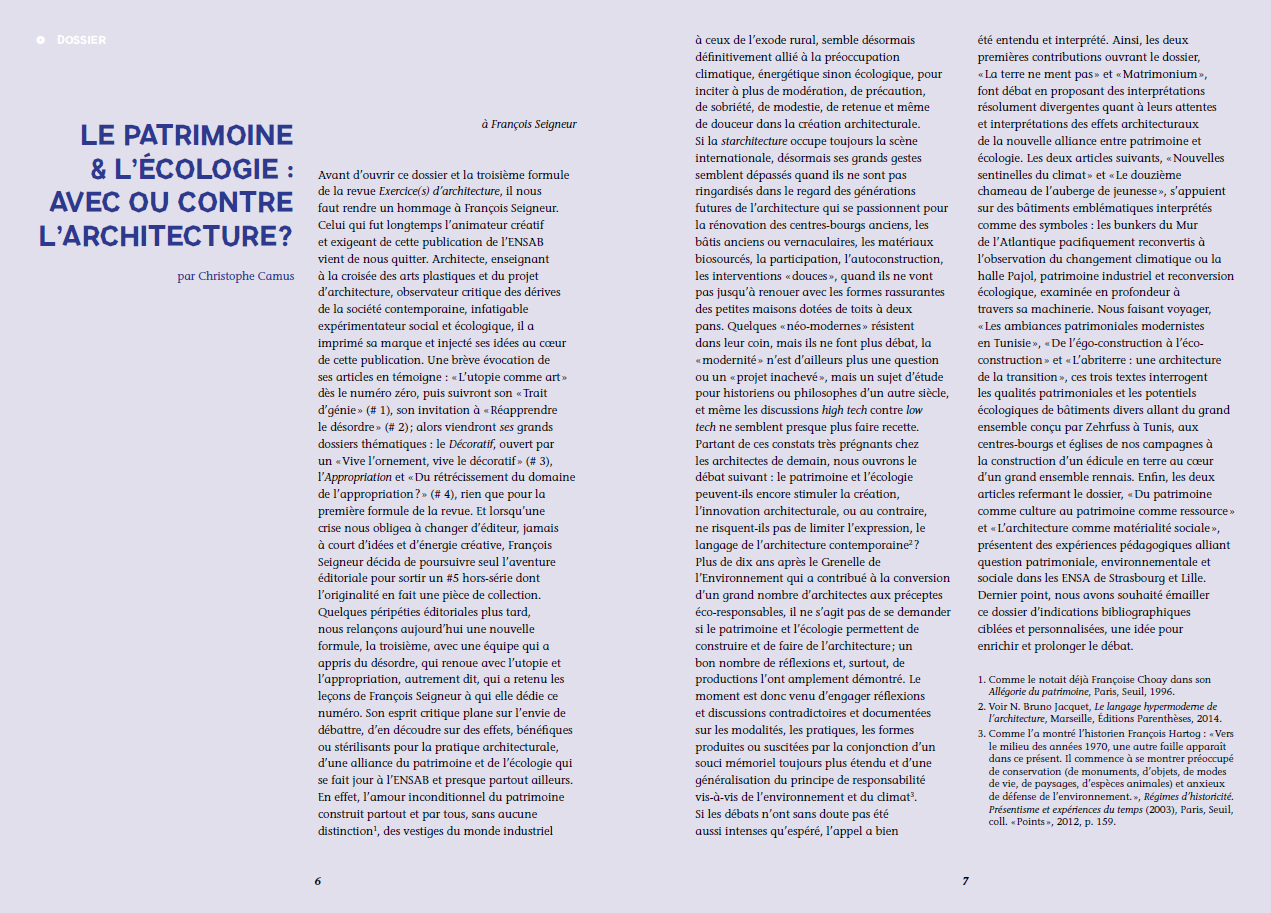 The eighth issue of the journal of the École Nationale Supérieure d'Architecture de Bretagne focuses on the relationship between heritage,