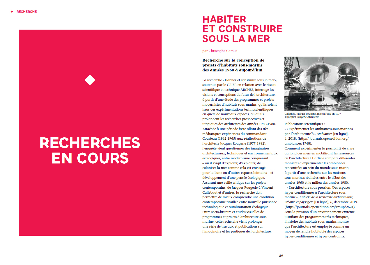 , it reports on the work and activities of the school's teachers and students, while opening a debate on a major architectural theme.