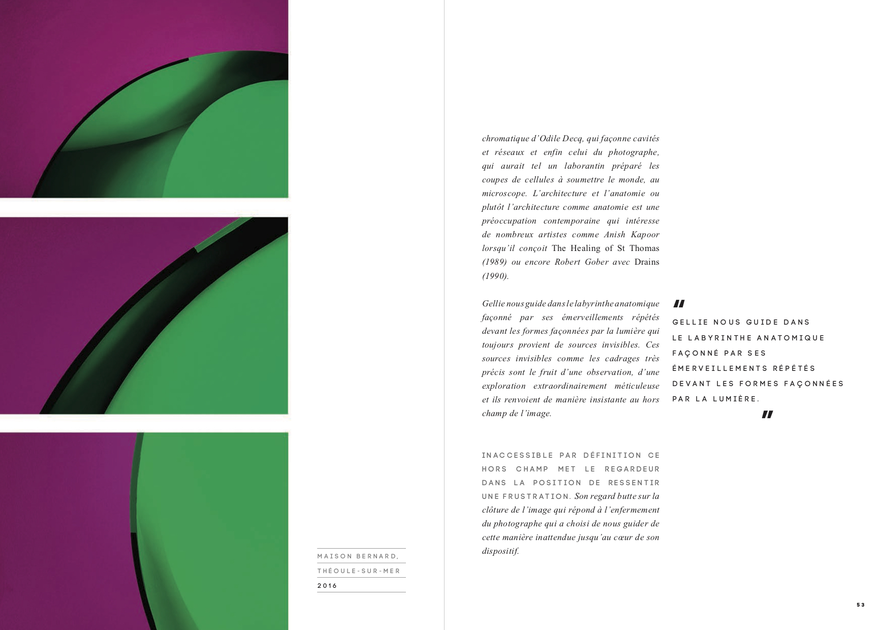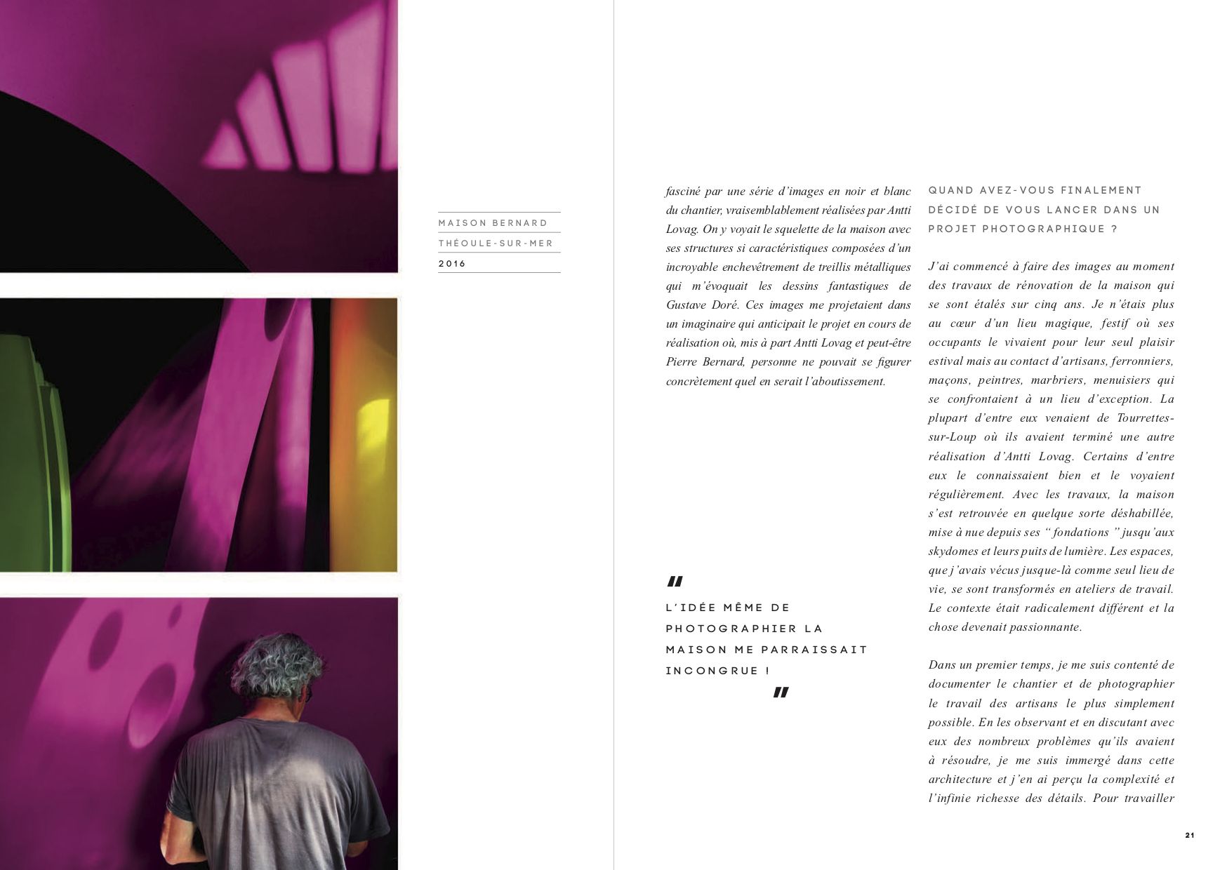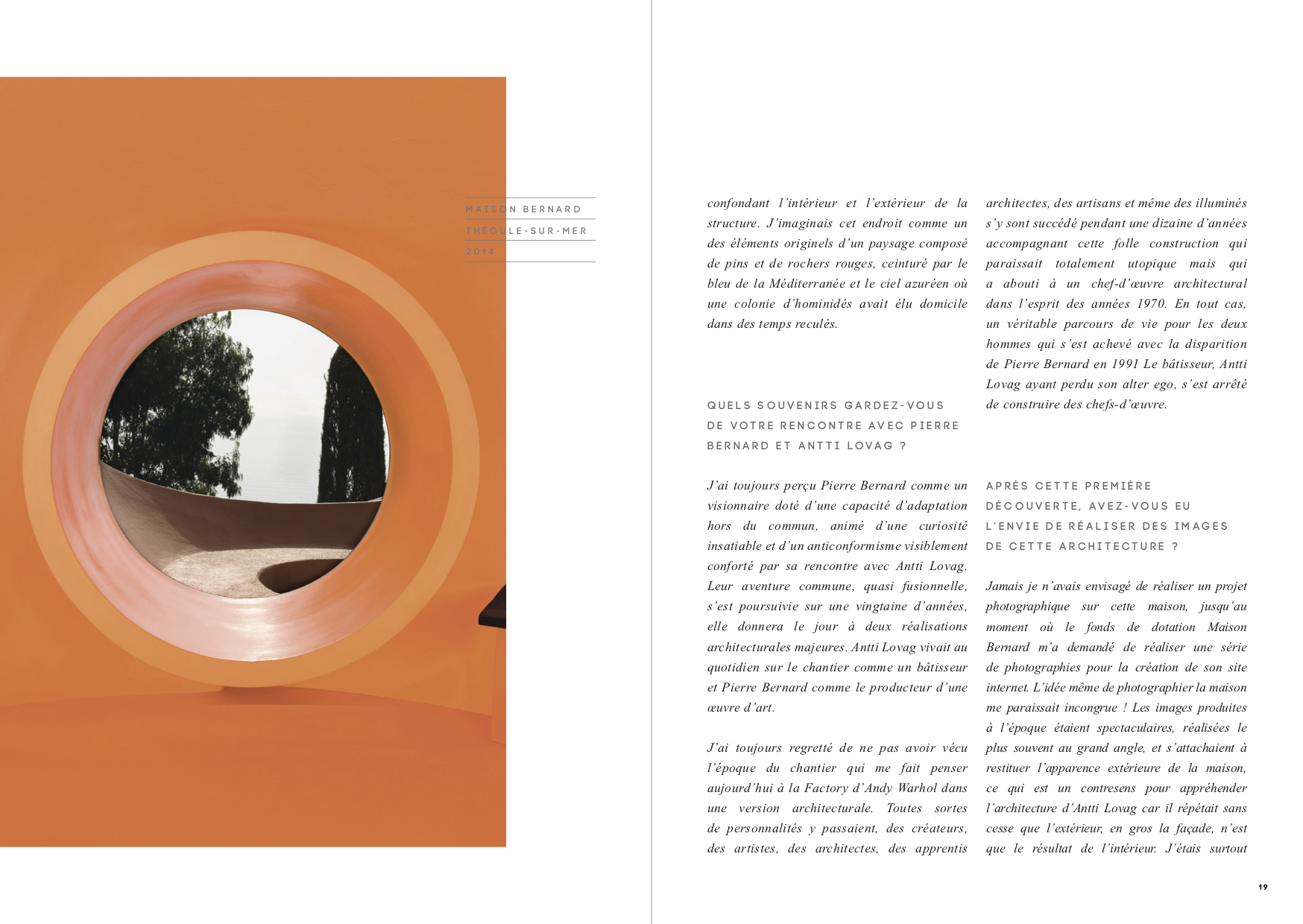 architecture carried out in the 1970s by Antti Lovag in association with Pierre Bernard. The book documents a site-specific project by photograph Yves Gellie, a work on light and perception.