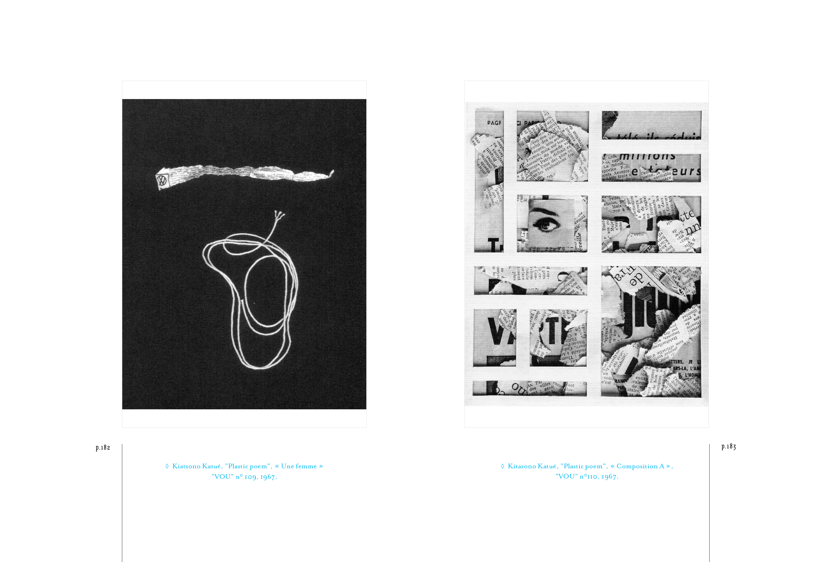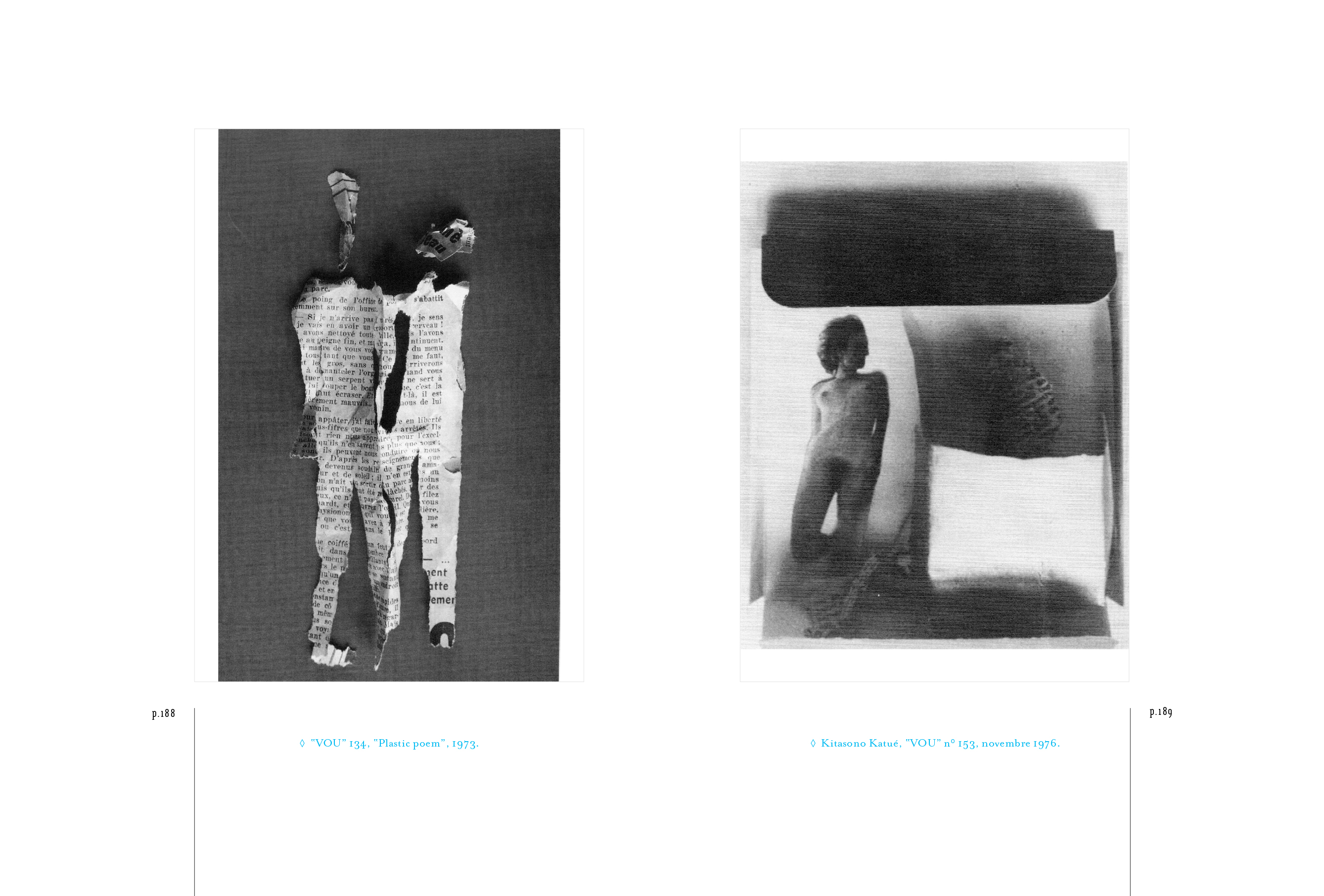 Plastic Poetry after being inspired by the photographs done by members of the VOU group. In the last twelve years of his life, Kitasono continued to experiment with the limitless field of visual poetry, maintaining the clean form and finely conceived pairings of images seen in his earliest successful text poems.