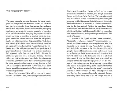In 2014, The Henry Moore Institute, Leeds, with Museion, Bolzano, Italy, and Museum Dhondt-Dhaenens, Deurle, Belgium, organized an exhibition with Carol Bove and Carlo Scarpa. Venues that have hosted significant solo exhibitions include The Museum of Modern Art, New York (2013); The Common Guild, Glasgow (2013); Palais de Tokyo, Paris (2010); Tate St Ives, England (2009); Blanton Museum of Art, The University of Texas at Austin (2006); Kunsthalle Zürich (2004); and the Institute of Contemporary Art, Boston (2004). The artist's first major museum presentation was held at Kunstverein, Hamburg, in 2003. Group exhibitions featuring Bove's work include the 58th Venice Biennale (2019); the 57th Venice Biennale (2017); documenta 13, Kassel, Germany (2012); the 54th Venice Biennale (2011); and the Whitney Biennial, Whitney Museum of American Art, New York (2008).