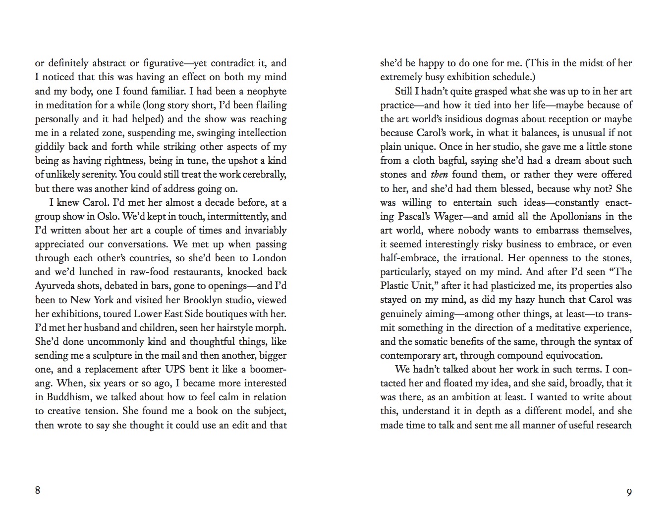 Unfold This Moment explores the work of Carol Bove, one of the most inventive and protean artists of her generation, whose practice has expanded—via numerous stylistic evolutions over two decades—from ethereal drawings of Playboy models to towering crushed-metal sculptures. Considering both her art and her life, the book offers a linear history of a figure who doesn't believe in linear time—her work evoking multiple temporalities simultaneously—and who harbors covertly radical ambitions for what art might do to the viewer's mind and body: not least how, without slipping into esotericism, it might serve as a gateway to meditative states. But, as befits someone who strategizes to displace her own ego in her art, the writing here refocuses Bove's artistic output into a prism for wider questions of artistic conduct and inspiration. How to react resourcefully to unhelpful frameworks of reception; maintaining curiosity while performing the increasingly professionalized role of being a successful artist; the value of instinct and the unconscious in creativity; openness to magical coincidences; and the overlap between the intellectual territory of contemporary art and some of the oldest spiritual philosophies.