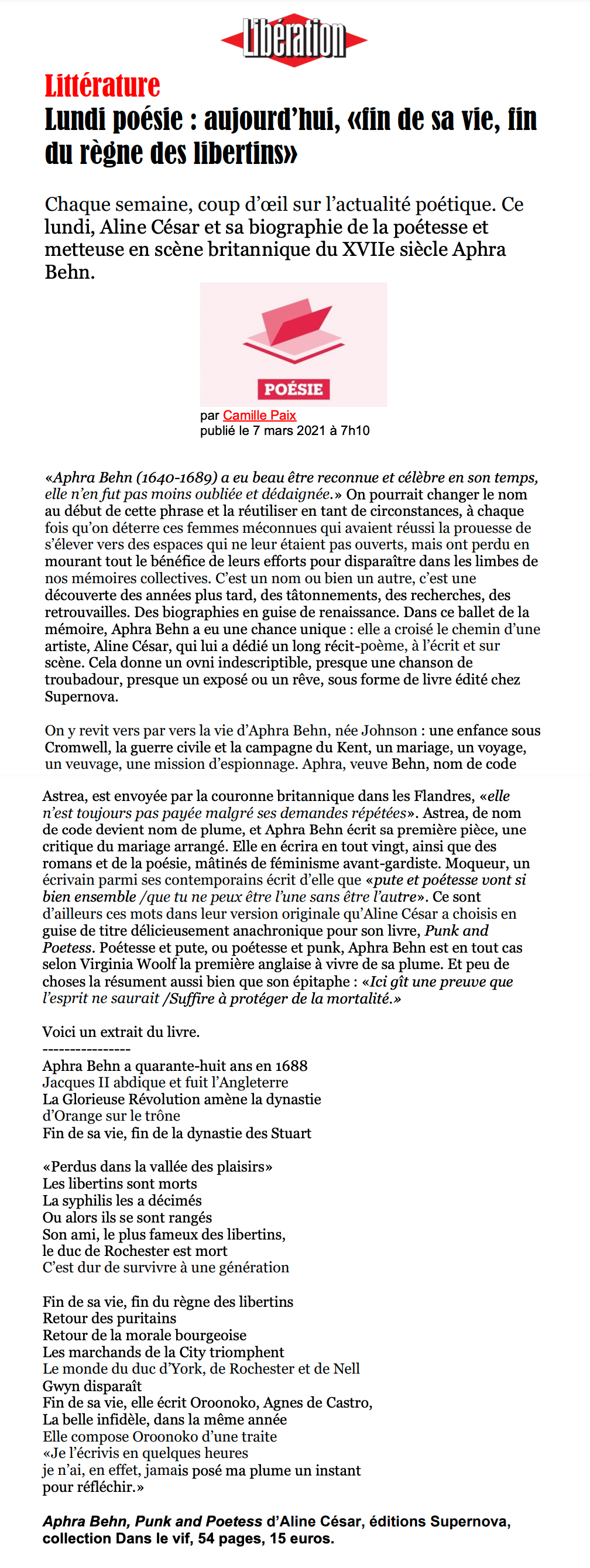 Aphra Behn, Punk and Poetess