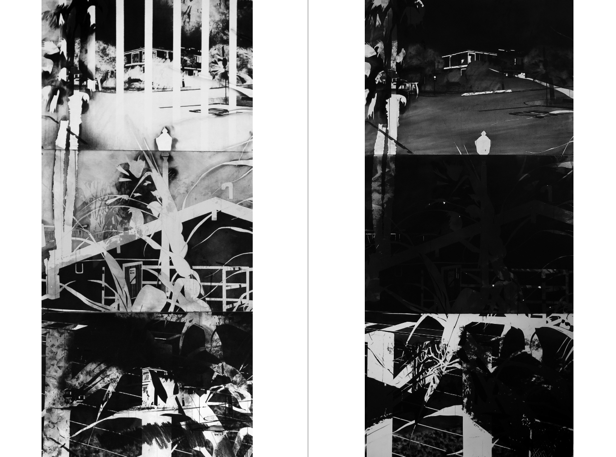 A series of drawings that retrace a trip to California, where the multiplied and labyrinthine architecture invites the visitor to wander between reality and fiction.