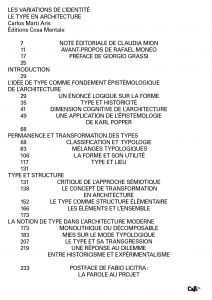 First French translation of the seminal essay on type in architecture by Spanish architect Carlos Martí Arís.
