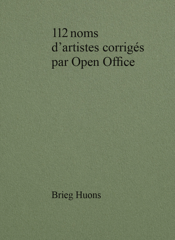 A list of 112 artists names modified with Open Office corrector (artist's book).