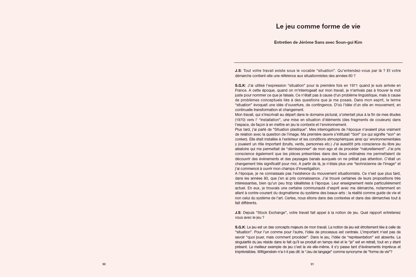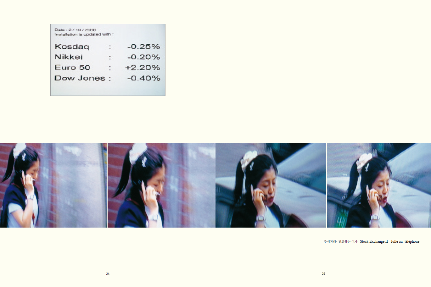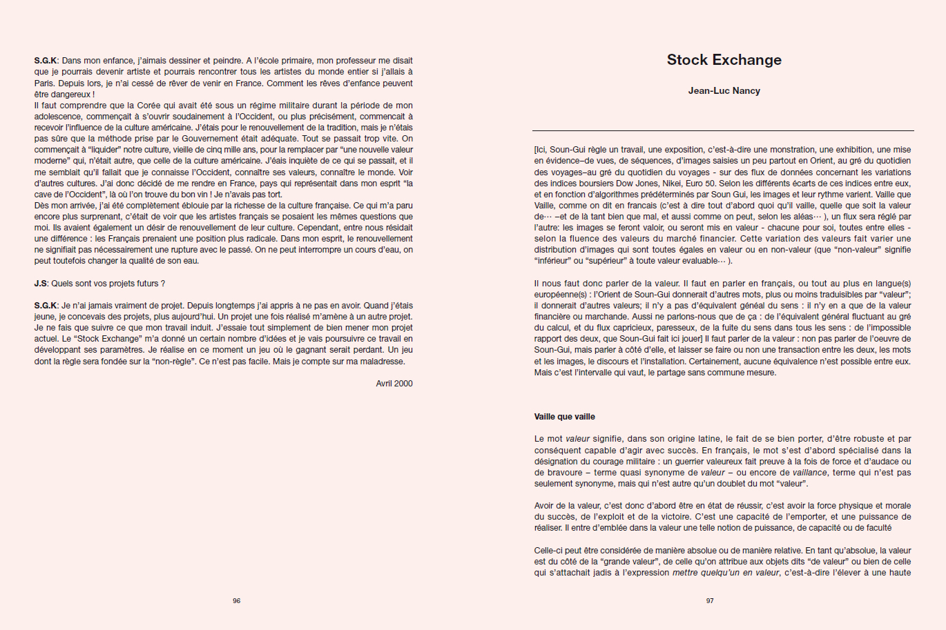 Catalogue documenting the series of works by Soun-Gui Kim presented for her exhibition "Stock Exchange" at the Art Sonje Center, Seoul, in 2000.