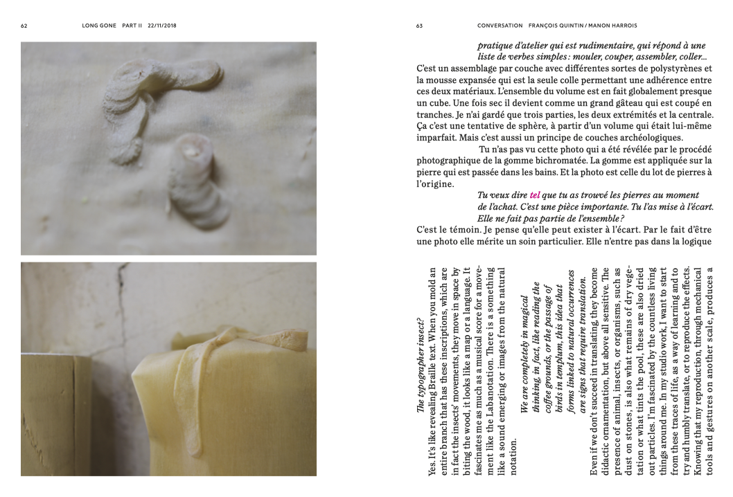 First monograph dedicated to the work of French visual artist Manon Harrois, built around two interviews conducted by François Quintin.