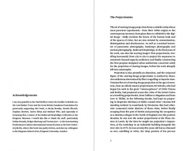 This publication explores the pioneering role of 19th century photographer Eadweard Muybridge in the development of moving-image projection. The study also maps the exceptional influence of his experiments on contemporary world's visual form.