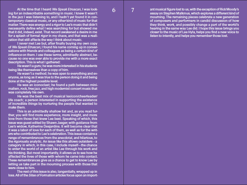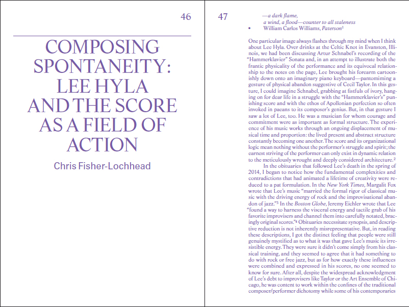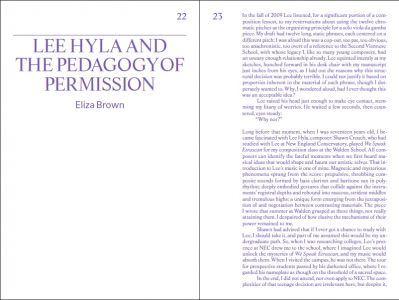 Guest edited by Shawn Jaeger, the Lee Hyla issue features remembrances and appreciations of the deeply missed composer by Stephen Drury, Rhonda Rider, David Rakowski, Bryan Hayslett, Chris Fisher-Lochheed, Eliza Brown, Scott Wheeler, and Ben Hjertmann.