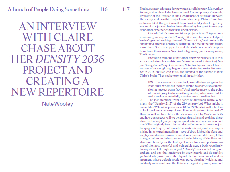 As well as articles by or with Jerome Harris on Jaki Byard, Charissa Noble on Johanna Beyer, Rick Moody on Stephen Malkmus, Sam Amidon on Son House, Colin Stetson on Henryk Górecki, Claire Chase, Kate Soper, and Eric Wubbels.