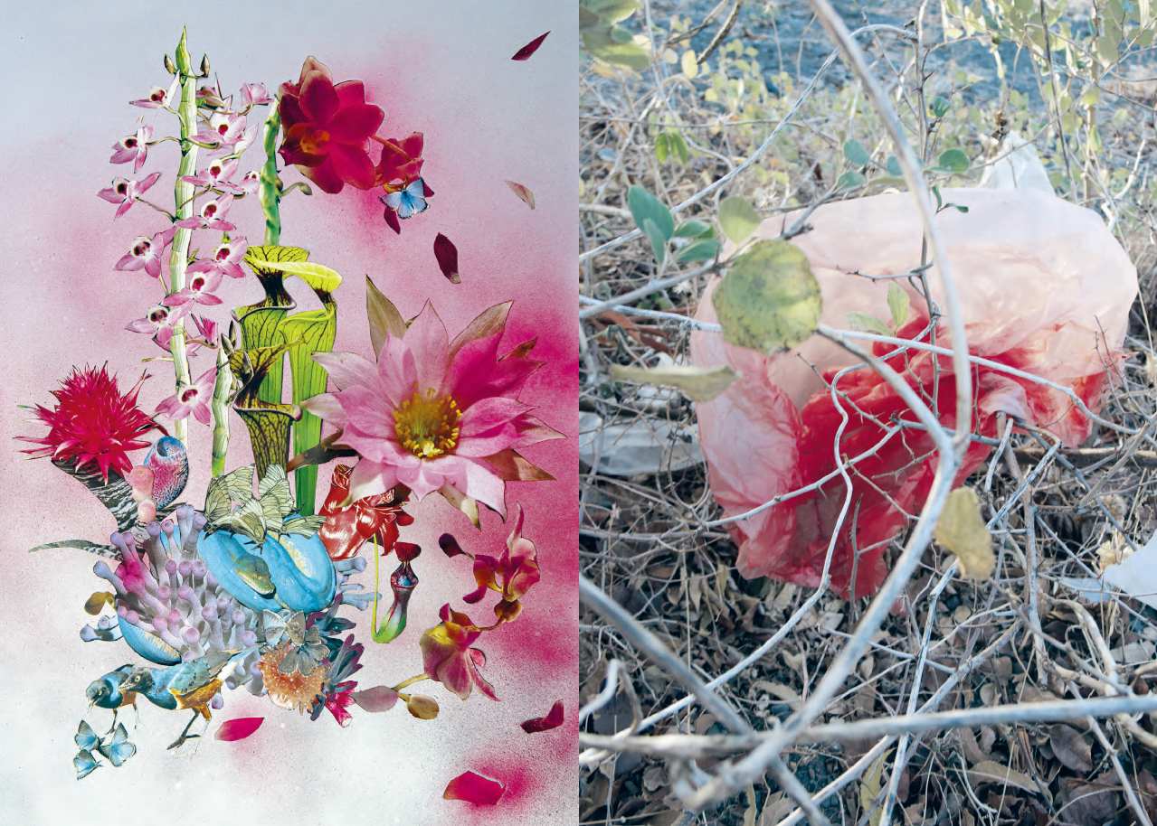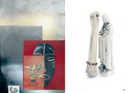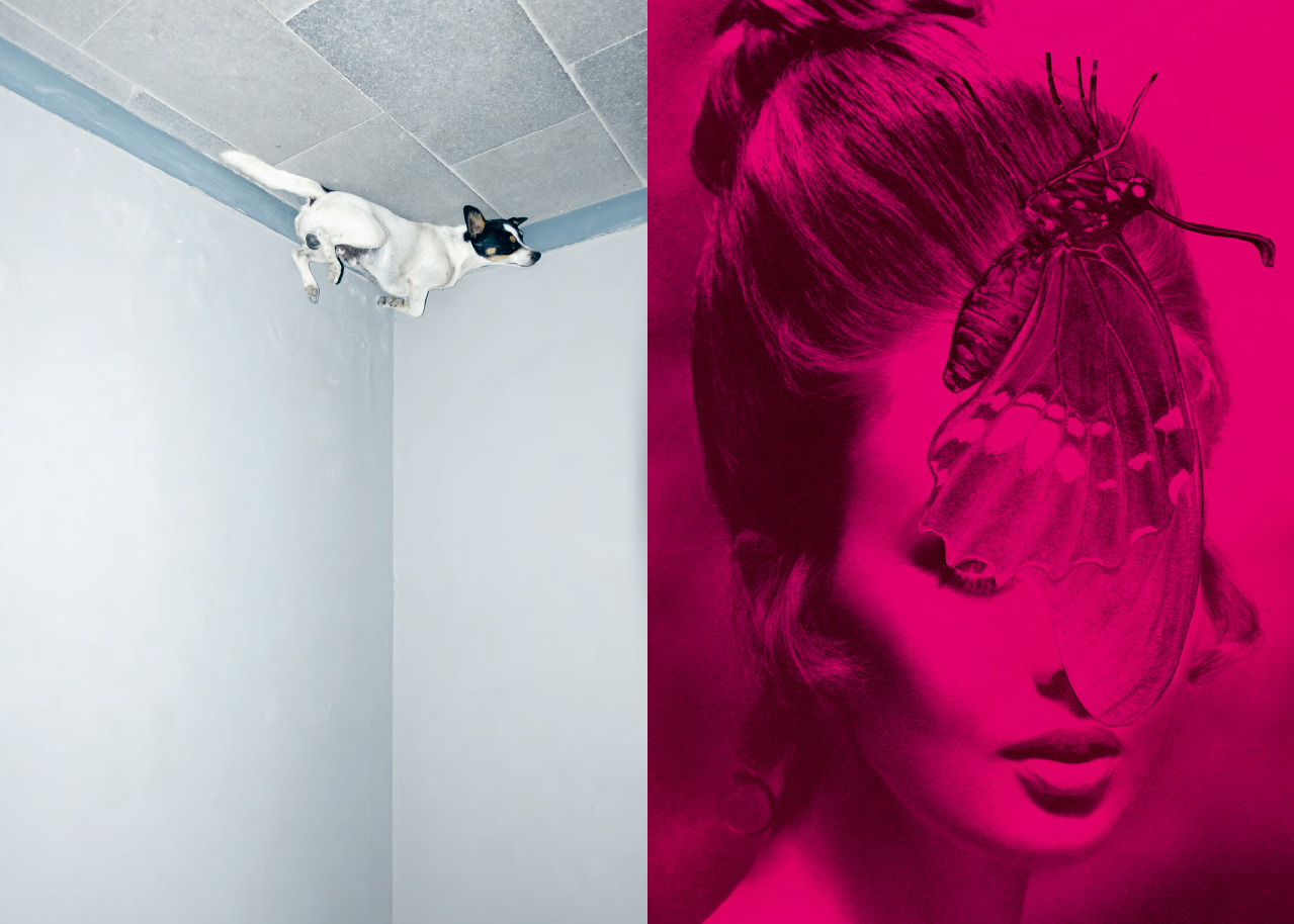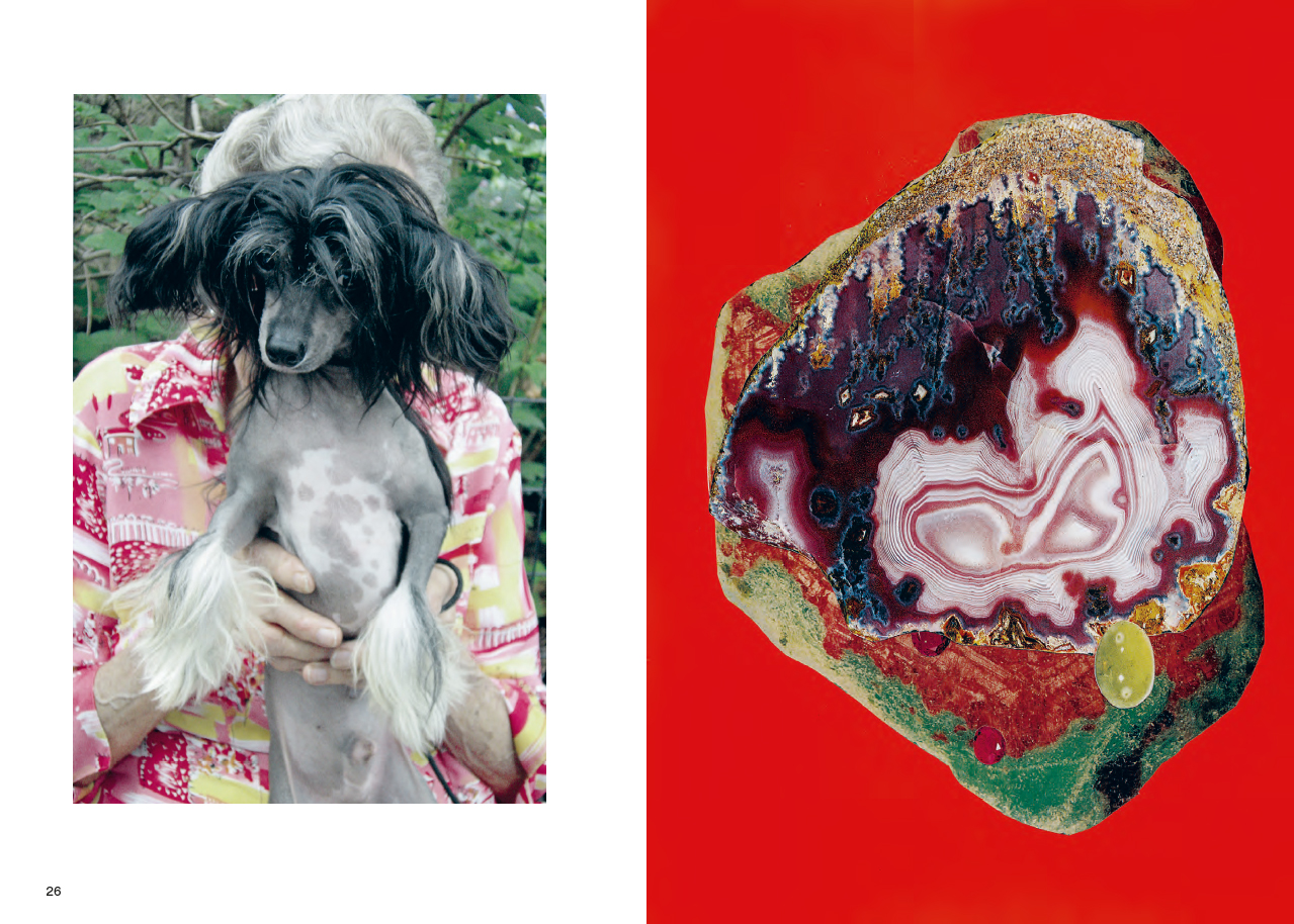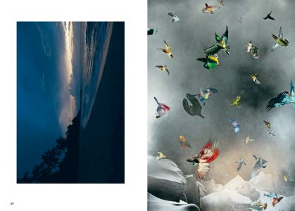 Widersprüchliche Bewegungsreize picks up where the author's previous book, Universen (Edition Patrick Frey, 2011), left off and gives visible, palpable form to their artistic work over the past ten years, transporting the reader once again into a teeming pictorial cosmos. In contrast to Universen, however, this artist's book features huber.huber's photographs rather than collages and ink drawings. Presented in two-page spreads, the pictorial compositions form ascending and descending series of various lengths in which other images using other techniques are embedded. The upshot is a dazzling tapestry of images, producing a sort of visual dissonance which, in extreme cases, is liable to cause the same symptoms as motion sickness. Brief texts (translated into a total of seven different languages), ranging from succinct descriptions to associative sensory impressions, provide clues to some of the compositions and sequencing whilst also serving as agreeable interludes. A remarkably comprehensive index of nouns (e.g. “apple”, “petri dish”, “salt lake”) and adjectives (e.g. “moist”, “geometric”, “eerie”) helps to render the artists' enigmatic visual cosmos readable.