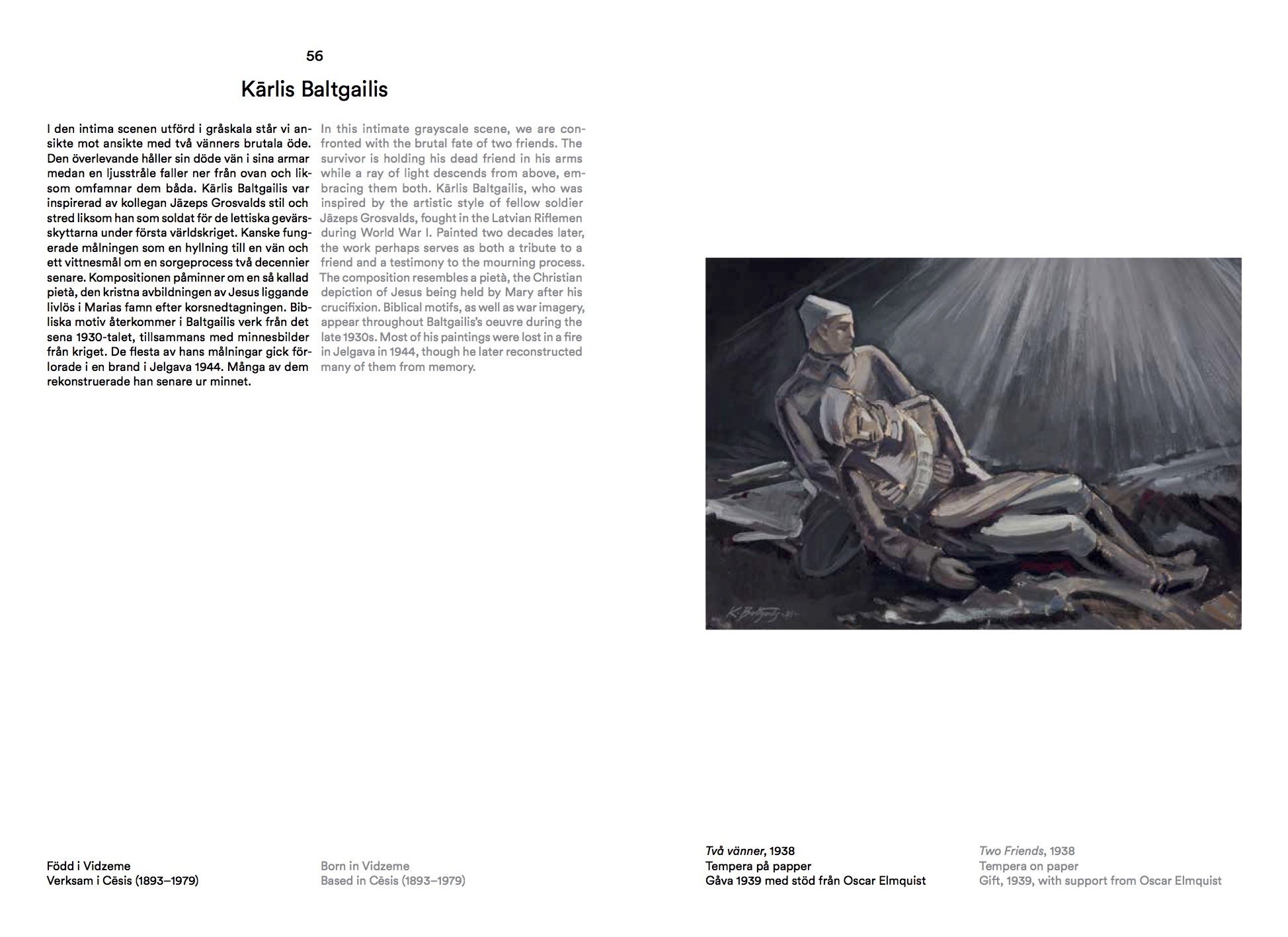 Migration: Traces in an Art Collection, which featured more than a hundred works from Malmö Konstmuseum made between 1880 and today, this publication brings to light the radical approach of museum director Ernst Fischer, who in 1945 transformed the museum into a refugee shelter for survivors of German concentration camps. It also highlights the museum's long-forgotten Latvian Collection, comprised of art acquired in solidarity with the young Baltic nation and its exiles. Contrasting works by exiled artists such as Sonia Delaunay-Terk, Lotte Laserstein, Endre Nemes, and Peter Weiss further animate the discussion, as do the geopolitical concerns of Pia Arke,