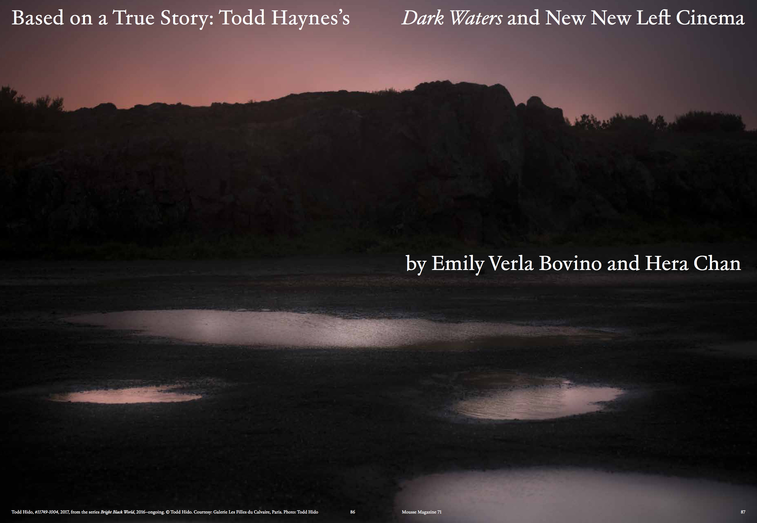 Bri Williams by Harry Burke, Virginia Overton by Ian Wooldridge, Pati Hill by Maurin Dietrich, Ann Greene Kelly by Andrew Berardini, On psychotic images and other visual symptoms by Aurélien Le Genissel, Todd Haynes's Dark Waters and new new left cinema, Larry Bell by Marie de Brugerolle, Pierre Guyotat by Estelle Hoy, Gabriel Kuri by Chris Sharp, Suellen Rocca by Hans Ulrich Obrist...