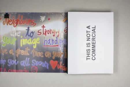 This is not a commercial addresses questions of economic models and strategies for artists to survive in today's neoliberal market structure. As painters, we procured work for ourselves through this participatory sculpture. We don't paint BMWs in Veli & Amos style: the brand is part and parcel of our sculpture, our postcards, our paintings and now our book. The point of the book is not only to document our billboard project, but also to keep it as up-to date as possible—with ads. Beginning November 11, 2019, buyers can design their own ad, upload an image file onto the website and put a full-page ad in our book. Buy a page and get a free copy. Prices start at €100 per page and increase by 2 percent with each ad sold. We publish your message: be part of our art, boost your business! www.thisisnotacommercial.com Don't wait to lose money!